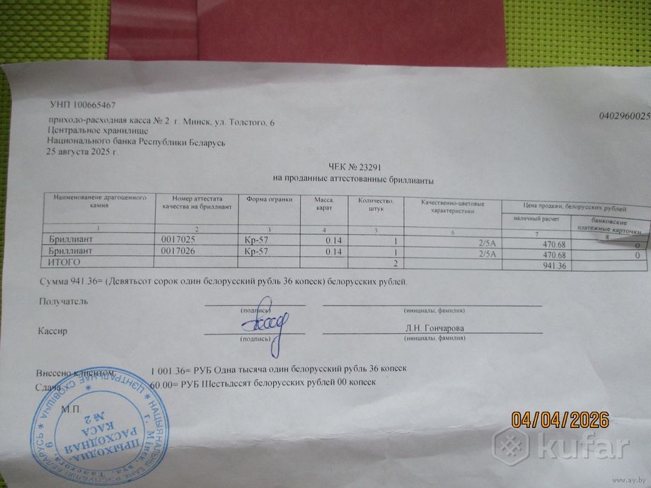 Серьги изготавливались в ювелирной мастерской. Вес 7.77г,золото 585. Блиллианты покупались в банке(все документы.)Стоили 1000р,не маленькие