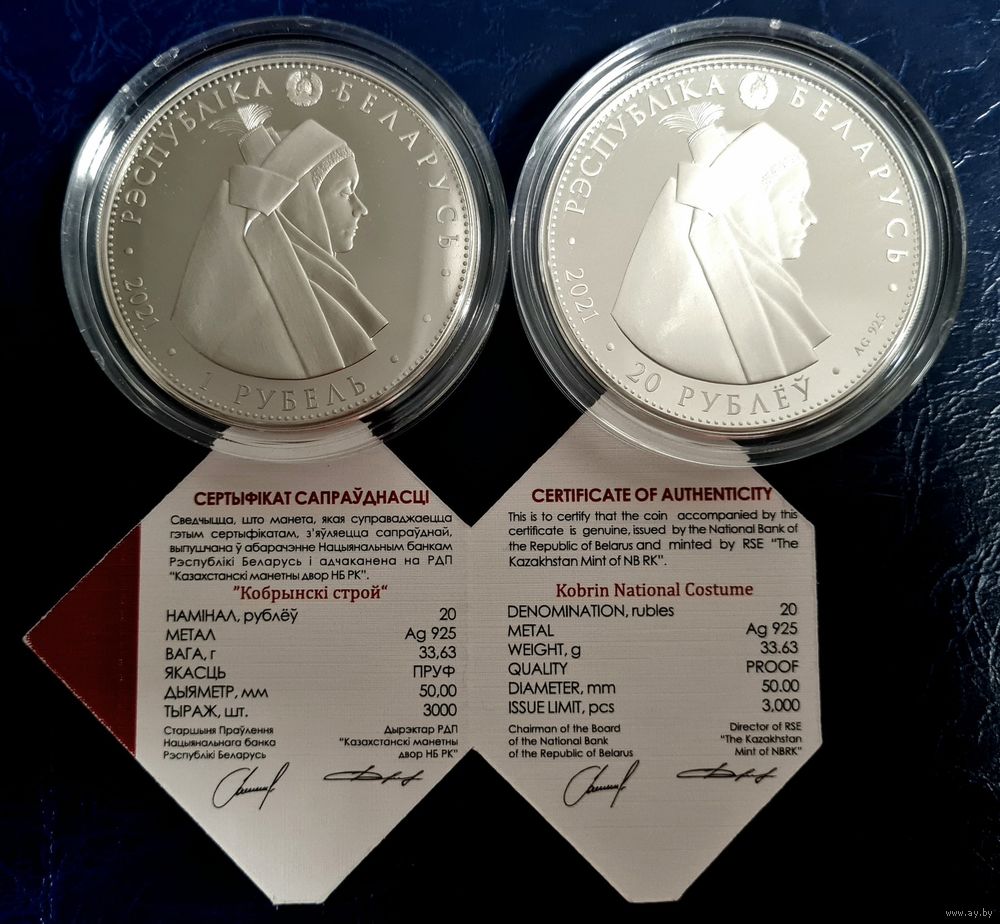 Оригинальный комплект: 1 рубль медно-никель 30 грамм.+20 рублей серебро 31,1 грамма 925 пробы. Серия Кобринский строй.