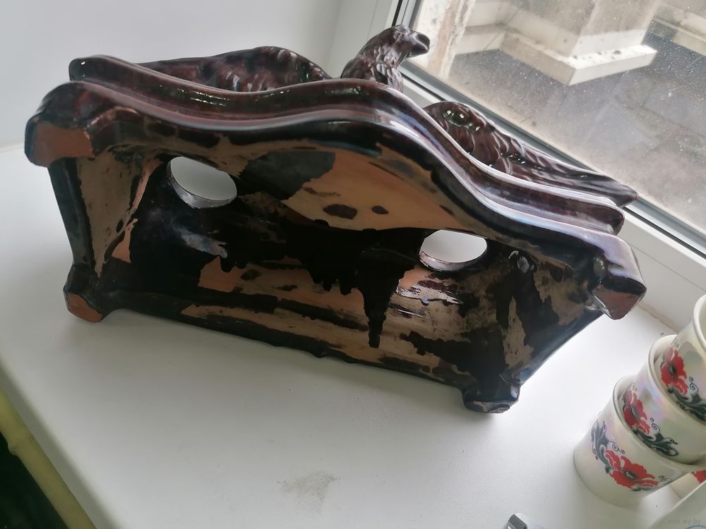 В хорошем состоянии. Скол на ножке снизу, в остальном в очень приличном состоянии, без сколов и трещин. Хорошая детализация, размер и исполнение