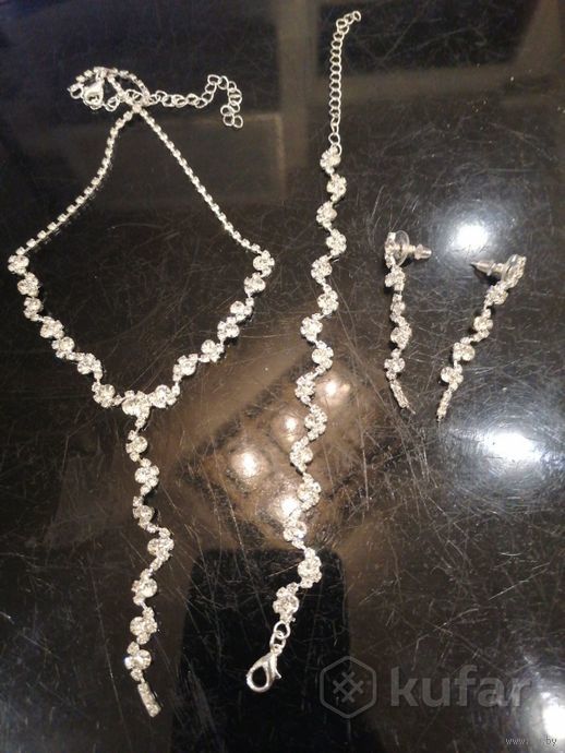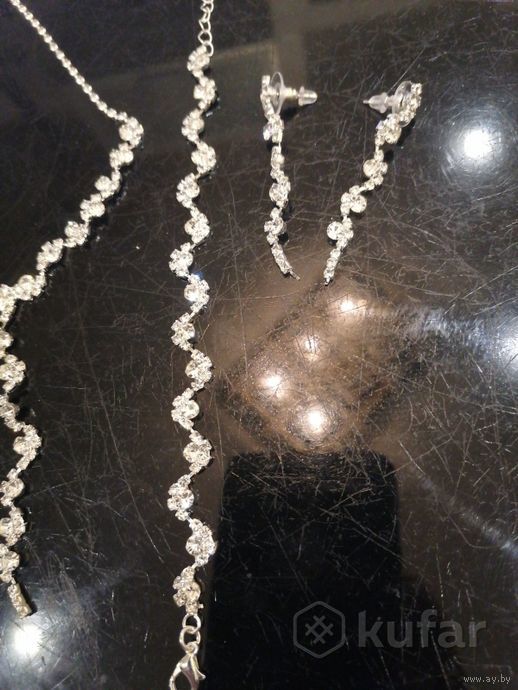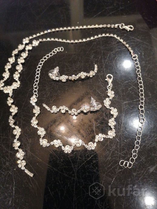 Шикарный свадебный комплект в подарочной коробочке, б/у 1 раз на свадьбу невестой. В комплекте колье, браслет и серьги. Состояние новой вещи, продаю за полцены от цены покупки. Будет отличным подарком к Новому году!