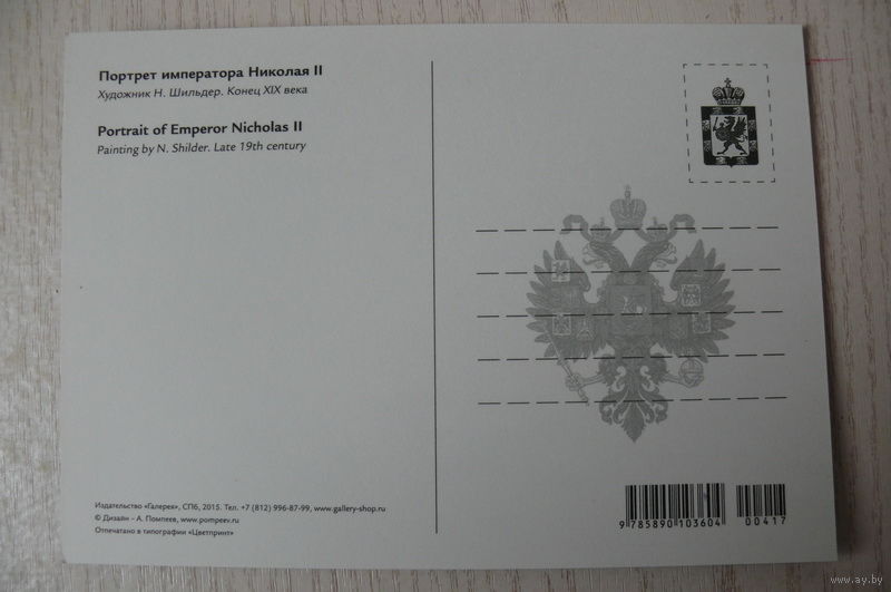 Шильдер Н., Портрет императора Николая II; 2015, чистая, изд. Санкт-Петербург.