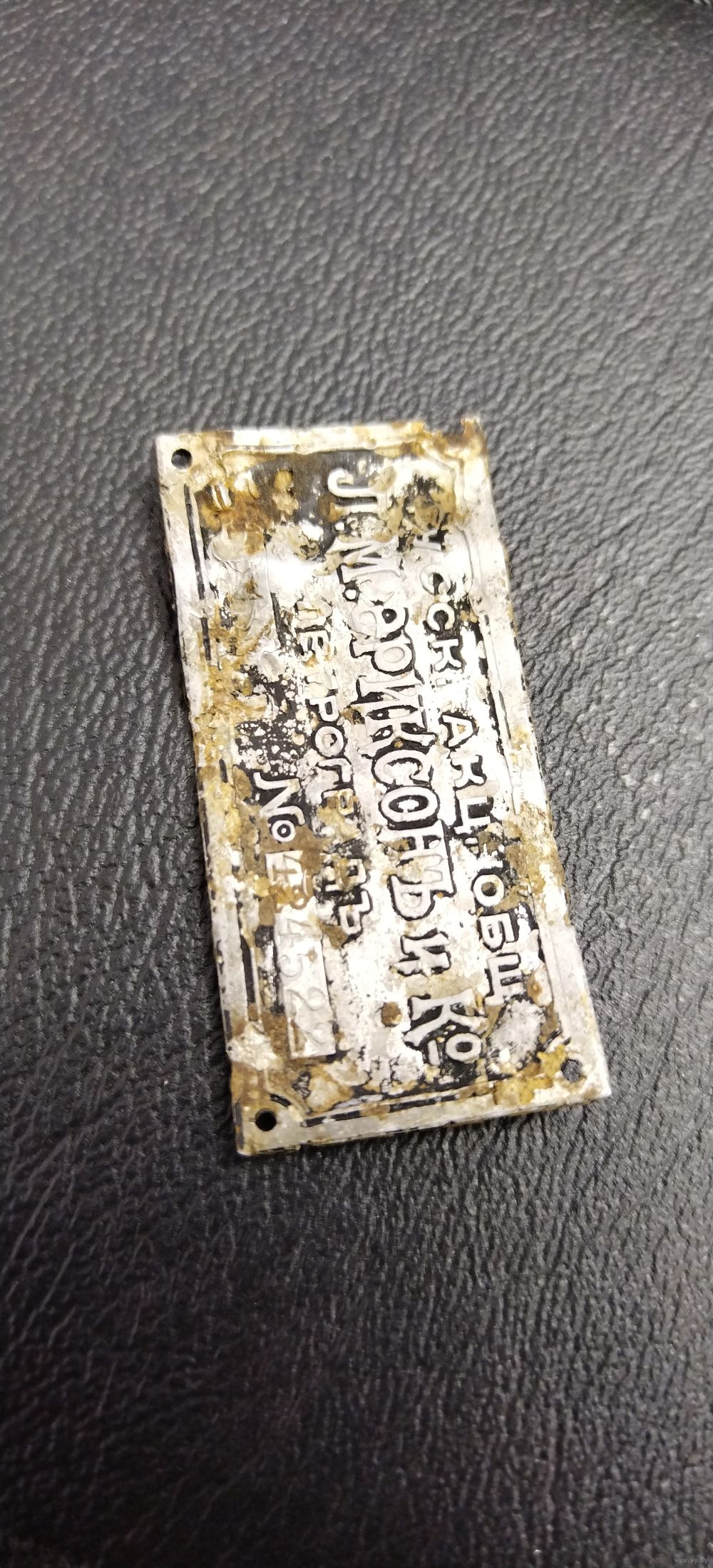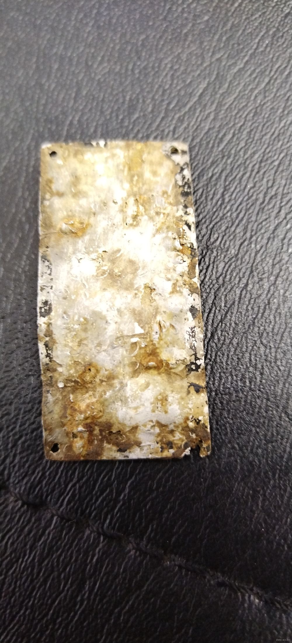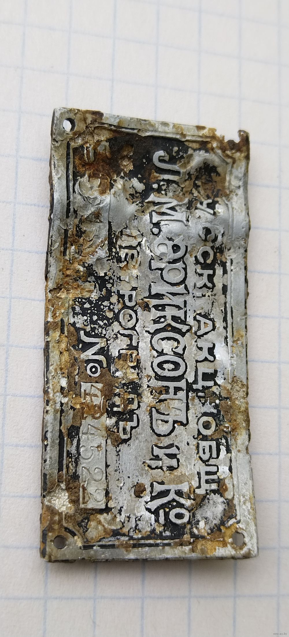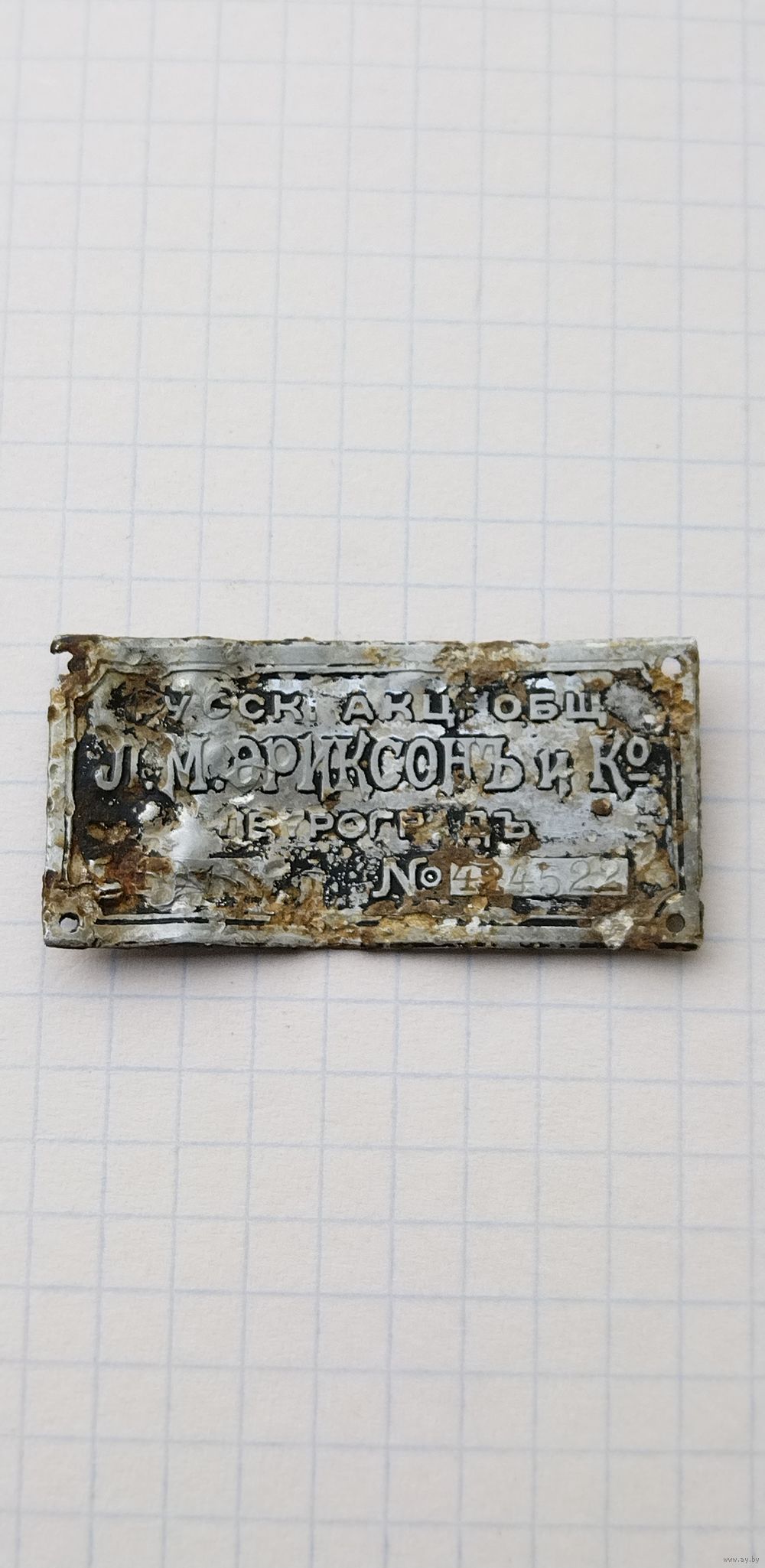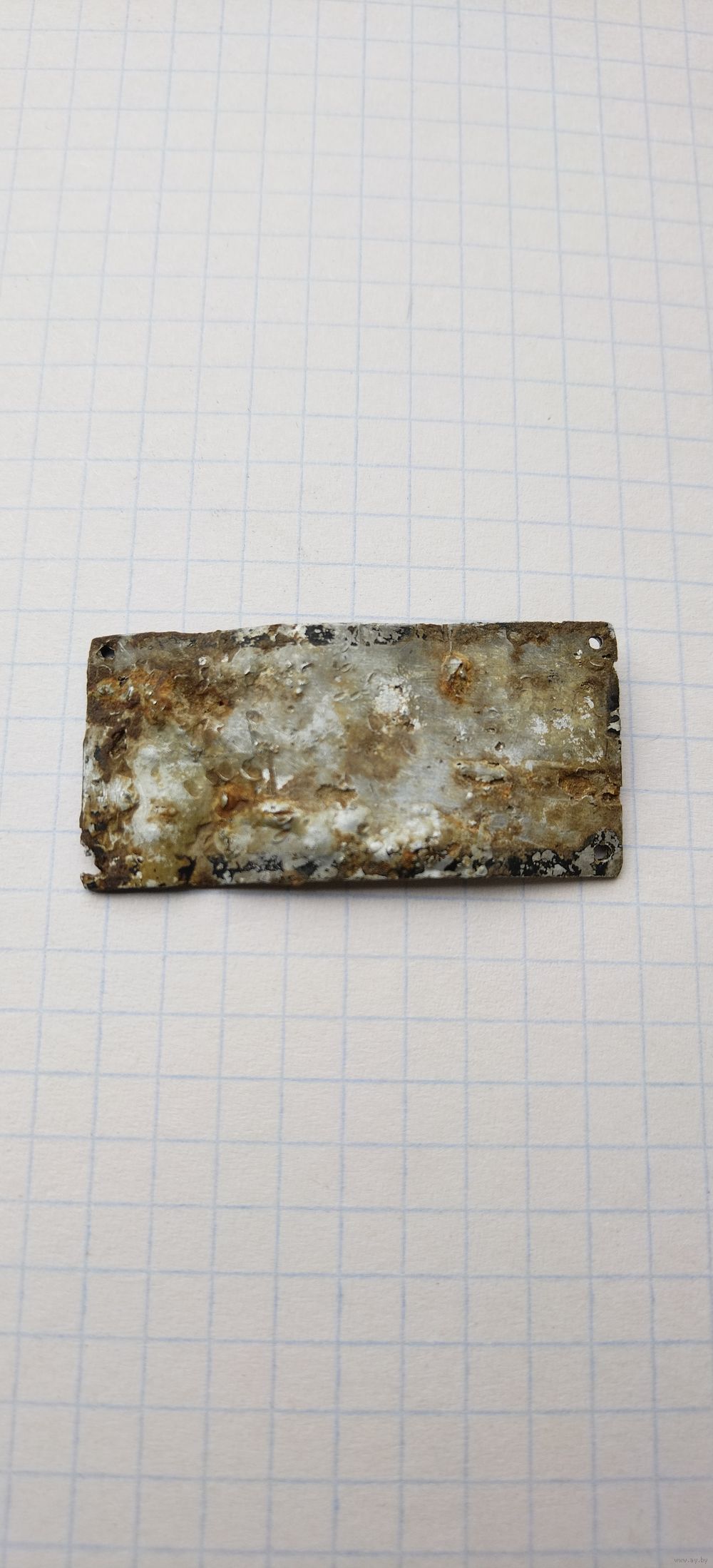 Бирка от полевого телефона использовавшегося Русской армией в период с 1914 по 1917 годы. Алюминий. Размер 4,5×2,1см.
