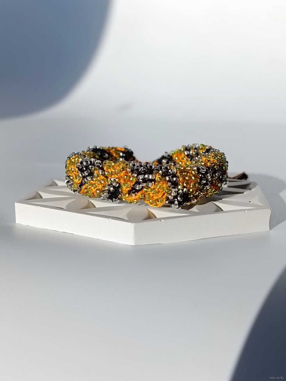 Широкий вязаный браслет из бисера