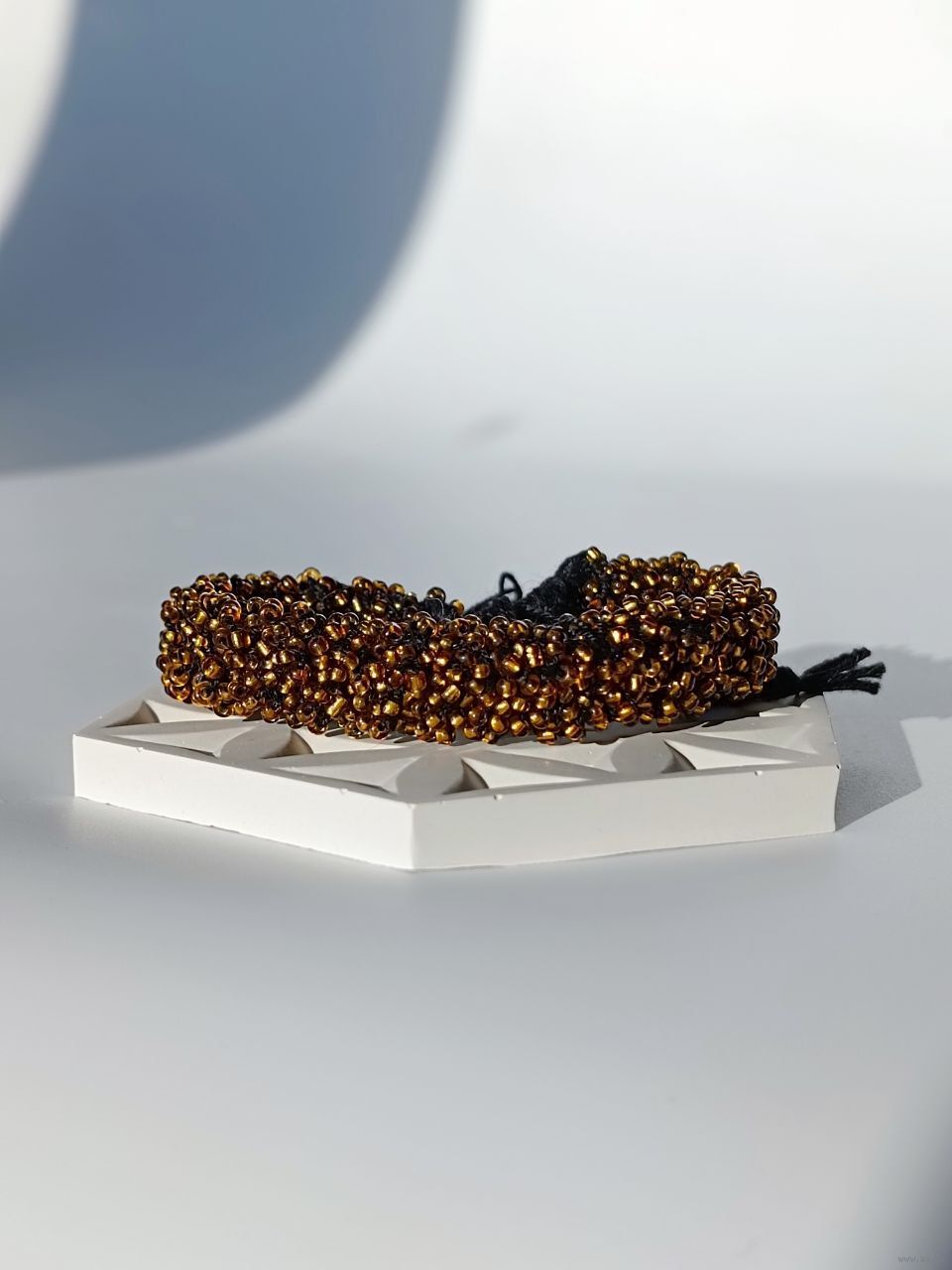 Широкий вязаный браслет из бисера
