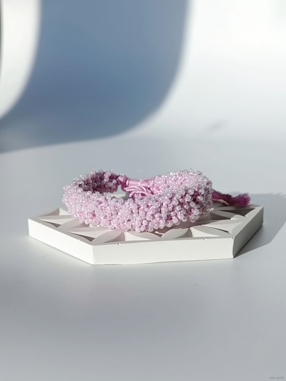 Широкий вязаный браслет из бисера