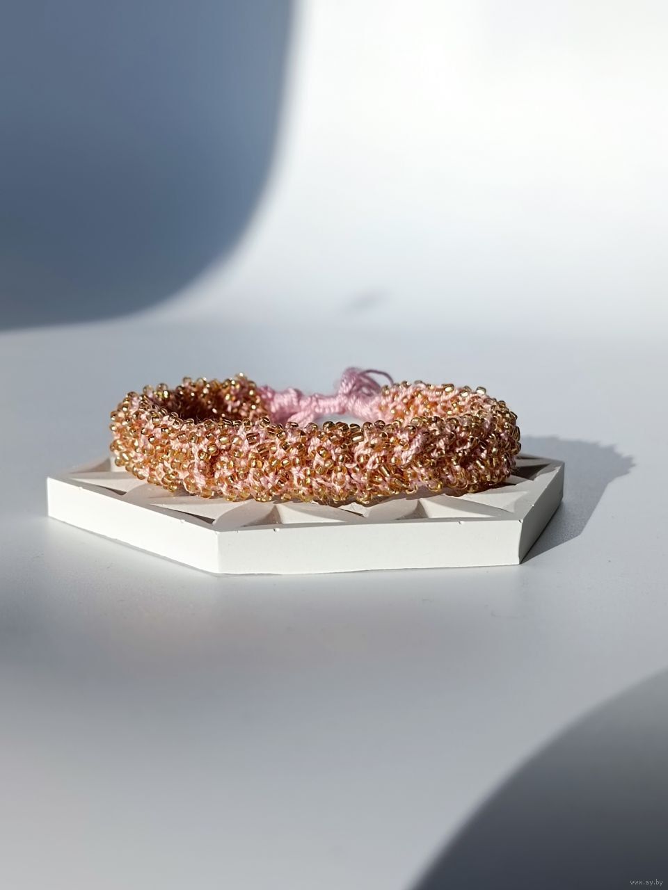 Широкий вязаный браслет из бисера