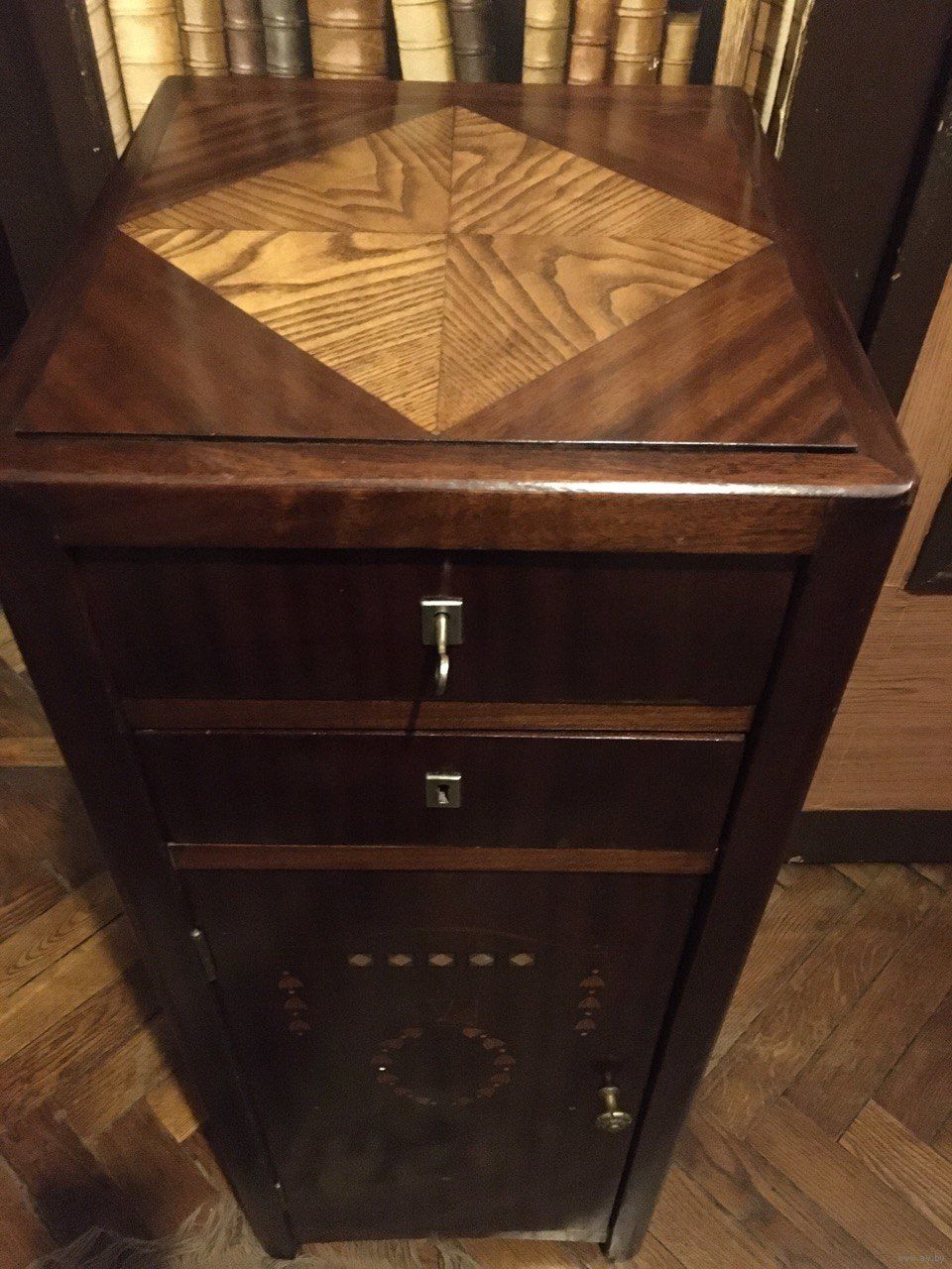 Прекрасный образец малой мебельной формы. Замки рабочие, есть ключ . Маркетри , перламутр, ручки латунь, после реставрации. Украшение любого интерьера. . Высота-85 см, ширина-35 см, глубина-39 см