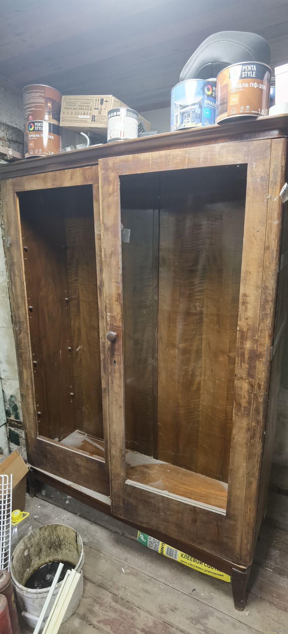 Шкаф времен СССР производство Румынии.Отсутствубт полки и стекла дверей.