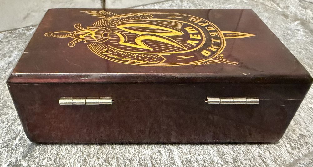 Шкатулка 50 лет Октября КГБ СССР 1967год резьба/дерево, размеры 10/17/7 см состояние отличное.