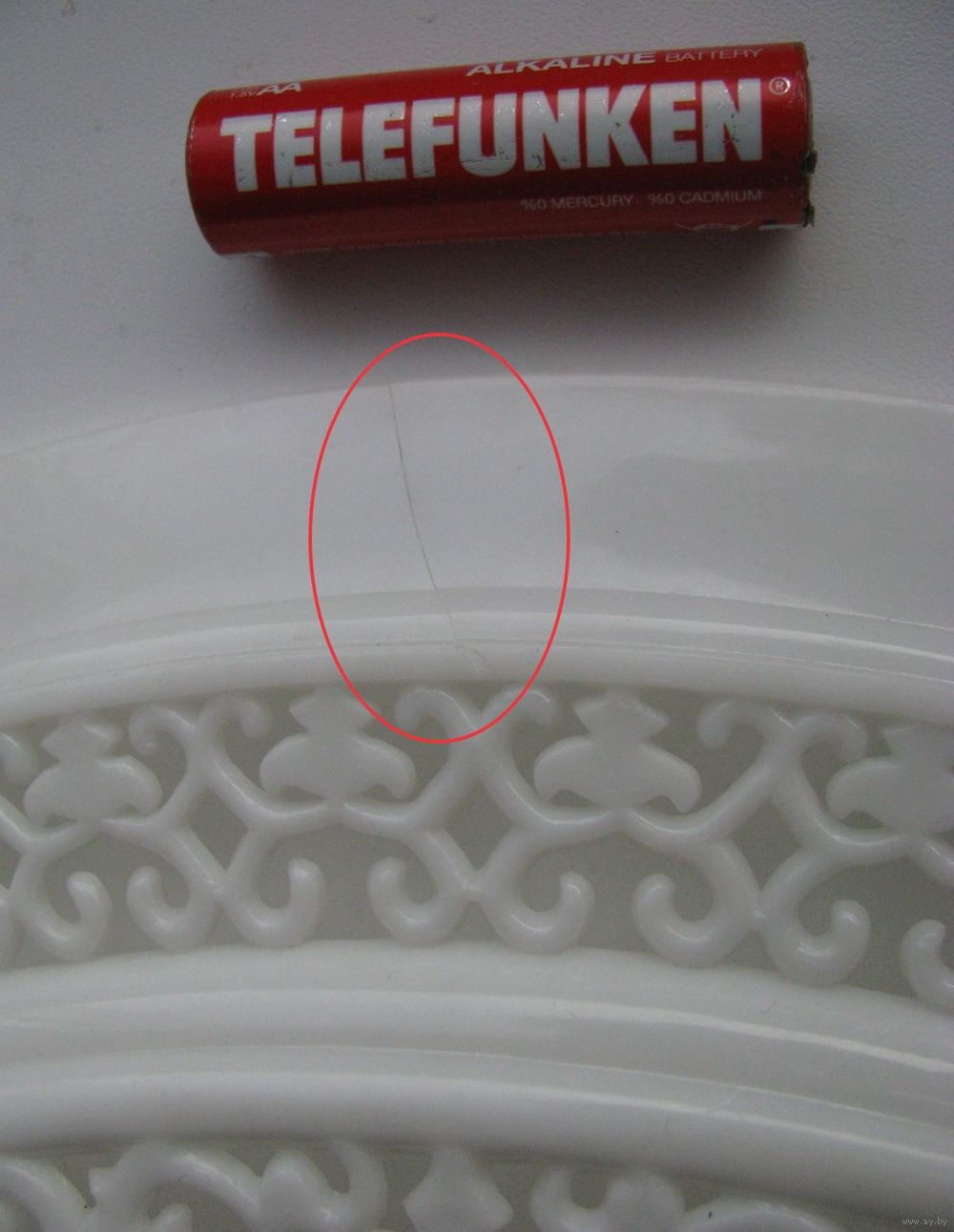 | На фото обозначена трещина в крышке. | |