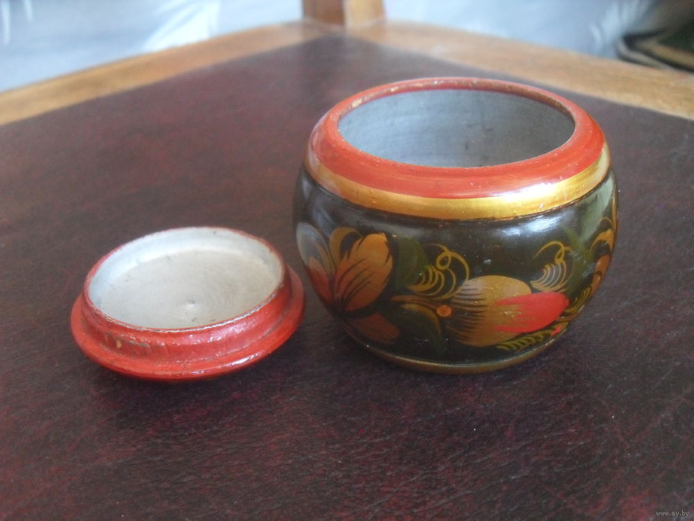 Шкатулка деревянная.Хохлома..6.5Х7.5 см.