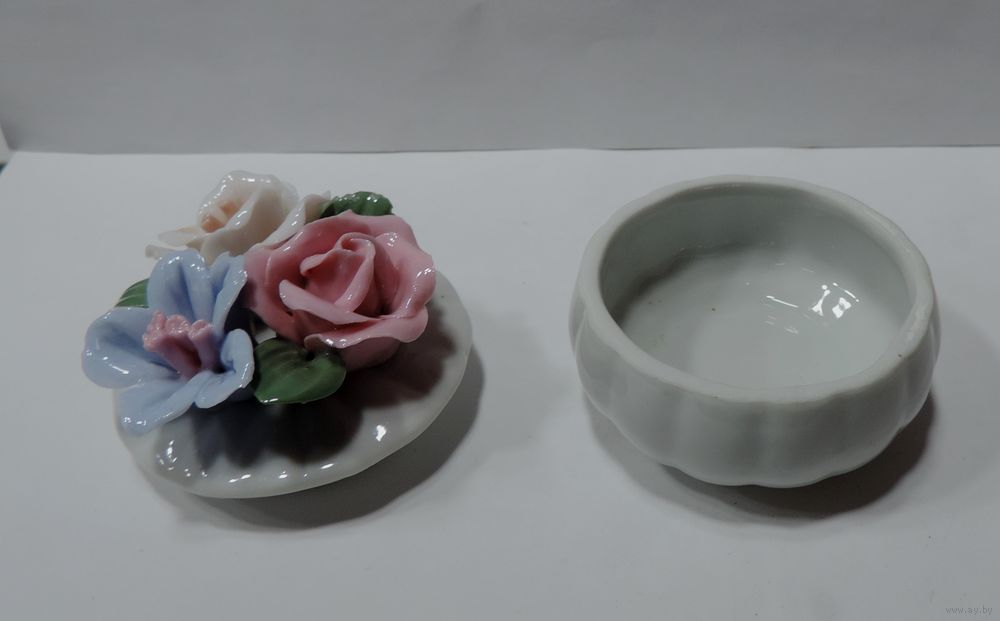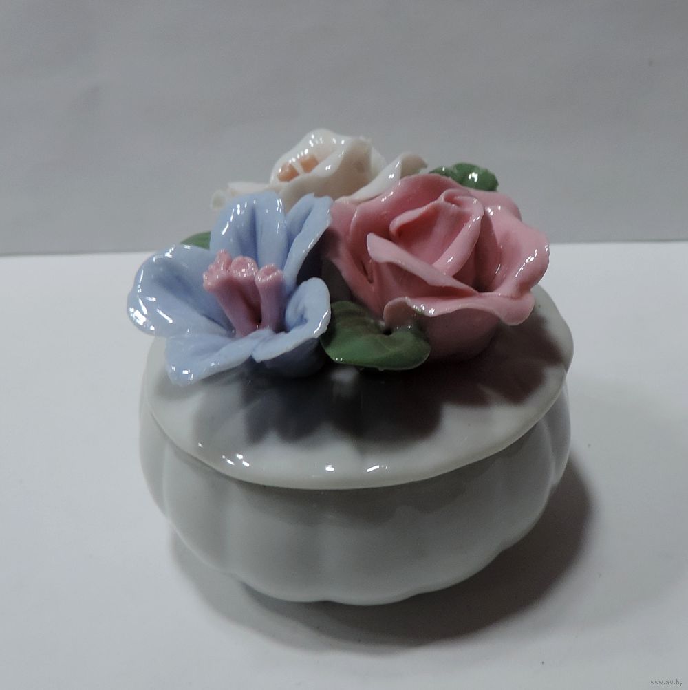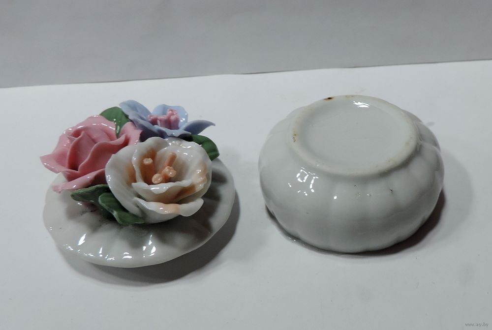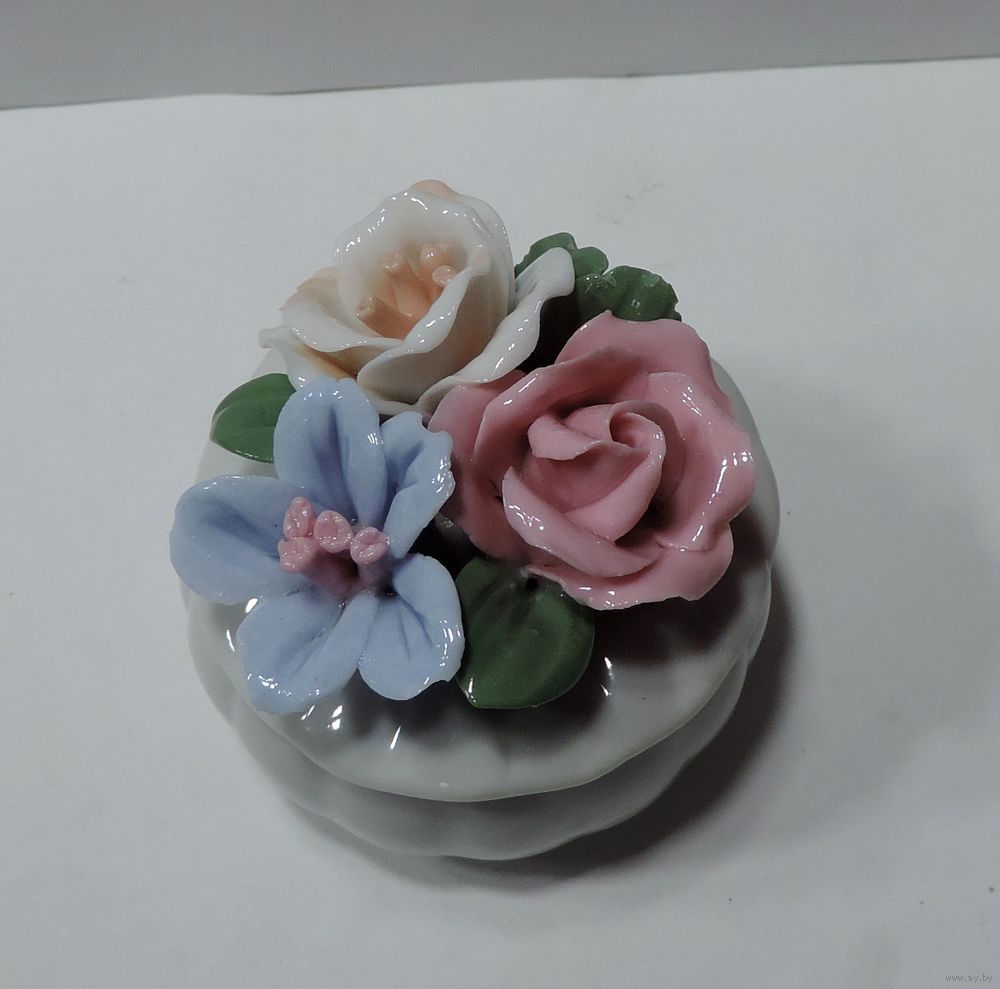Шкатулка фарфоровая "Цветы" 70-е годы Европа. Диаметр 6 см. Высота 5.5 см.