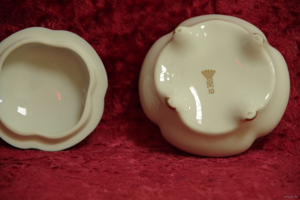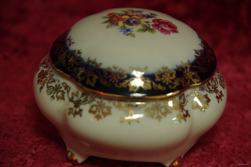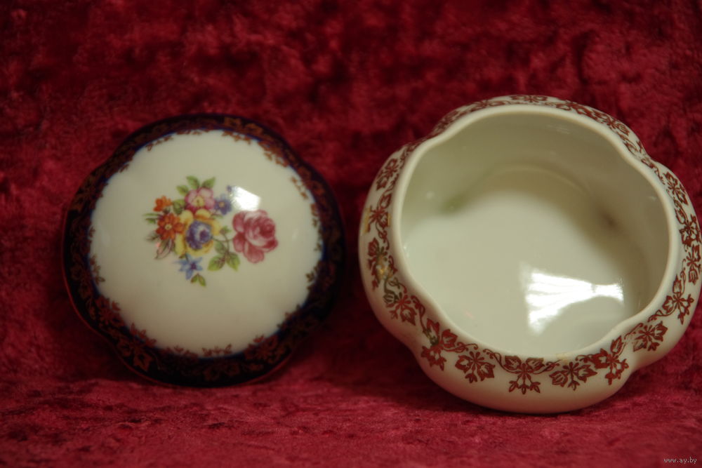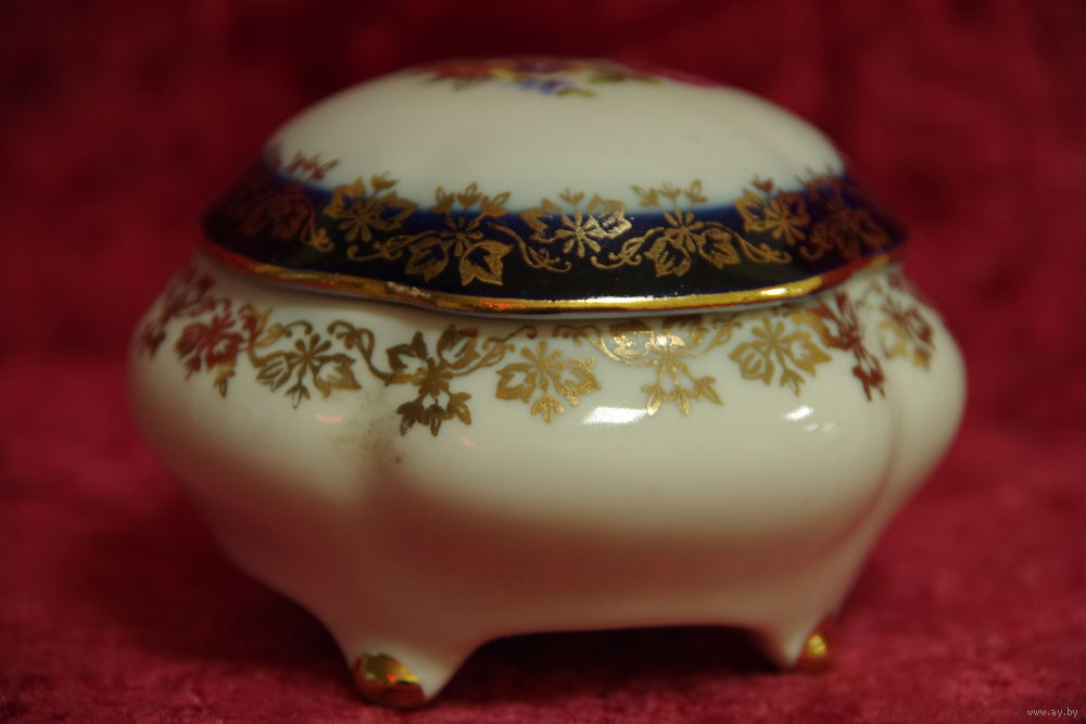 Шкатулка фарфоровая ( диаметр 9 см , высота 6 см ) целая
