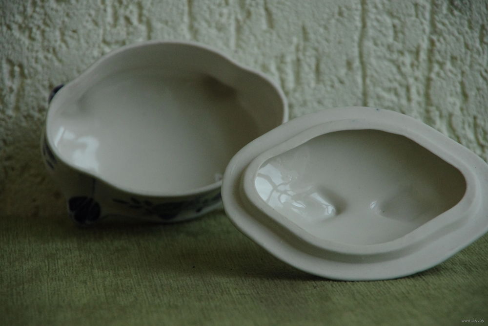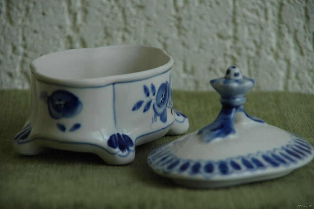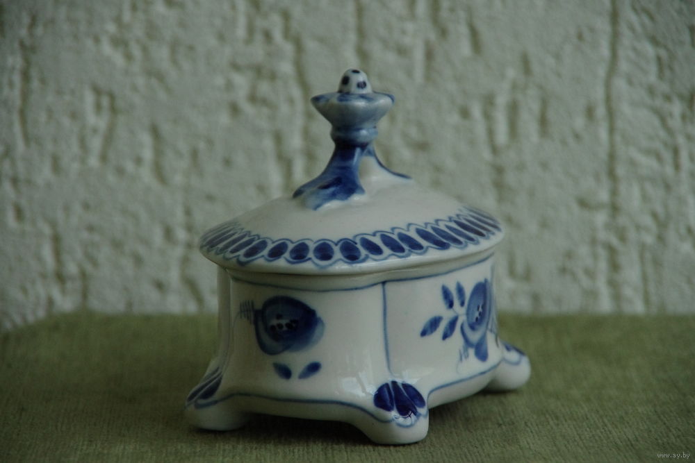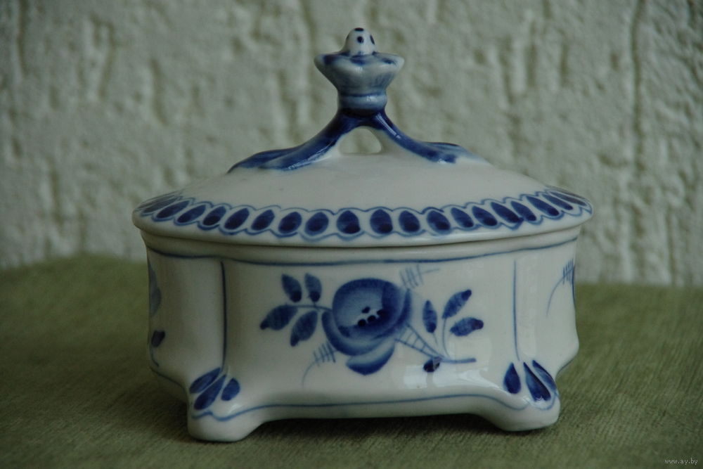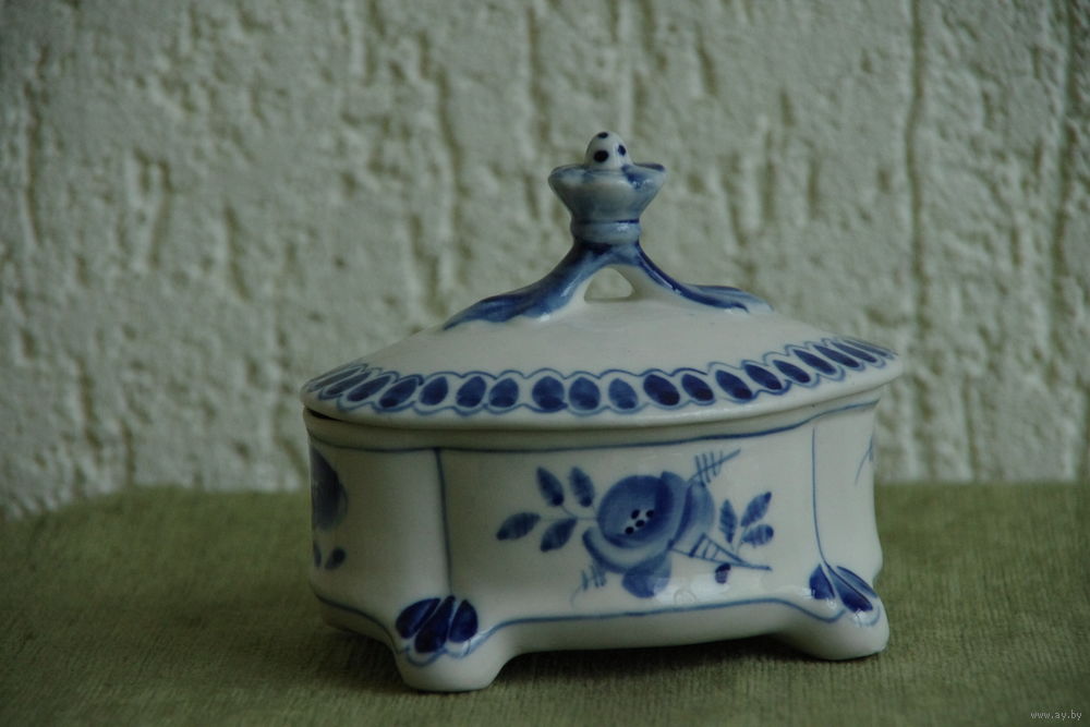 Шкатулка фарфоровая ( Гжель 50- е ) все целое ( 10 х 14 , высота 12 см )