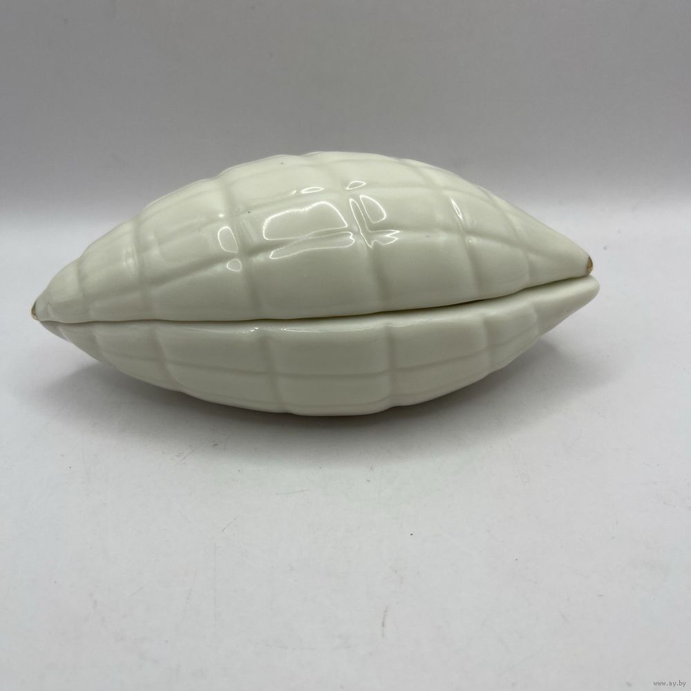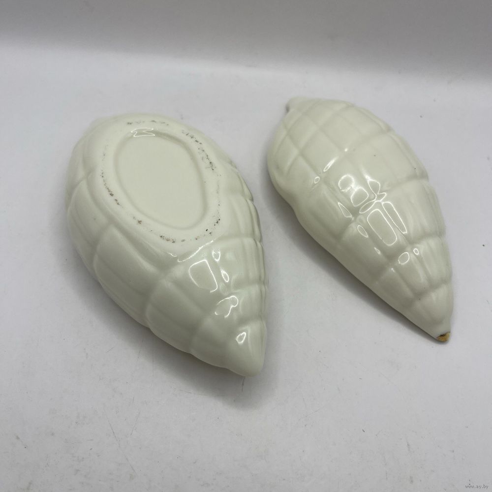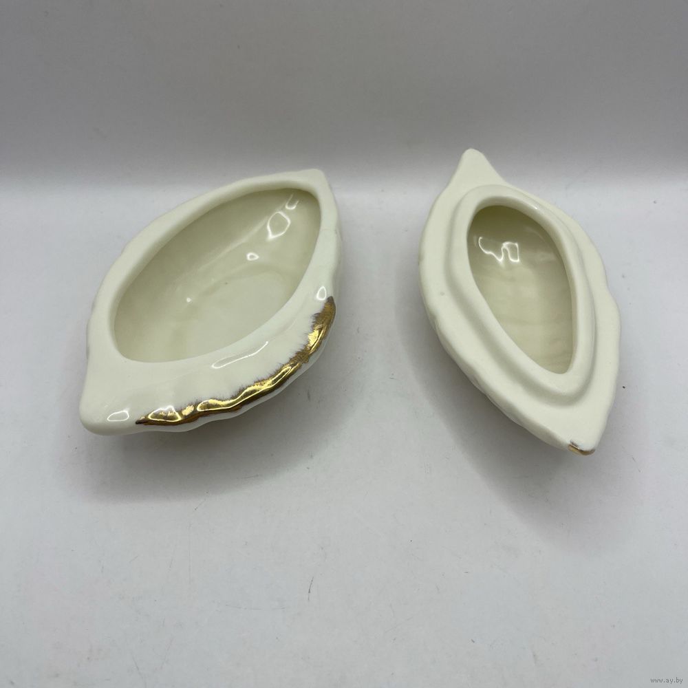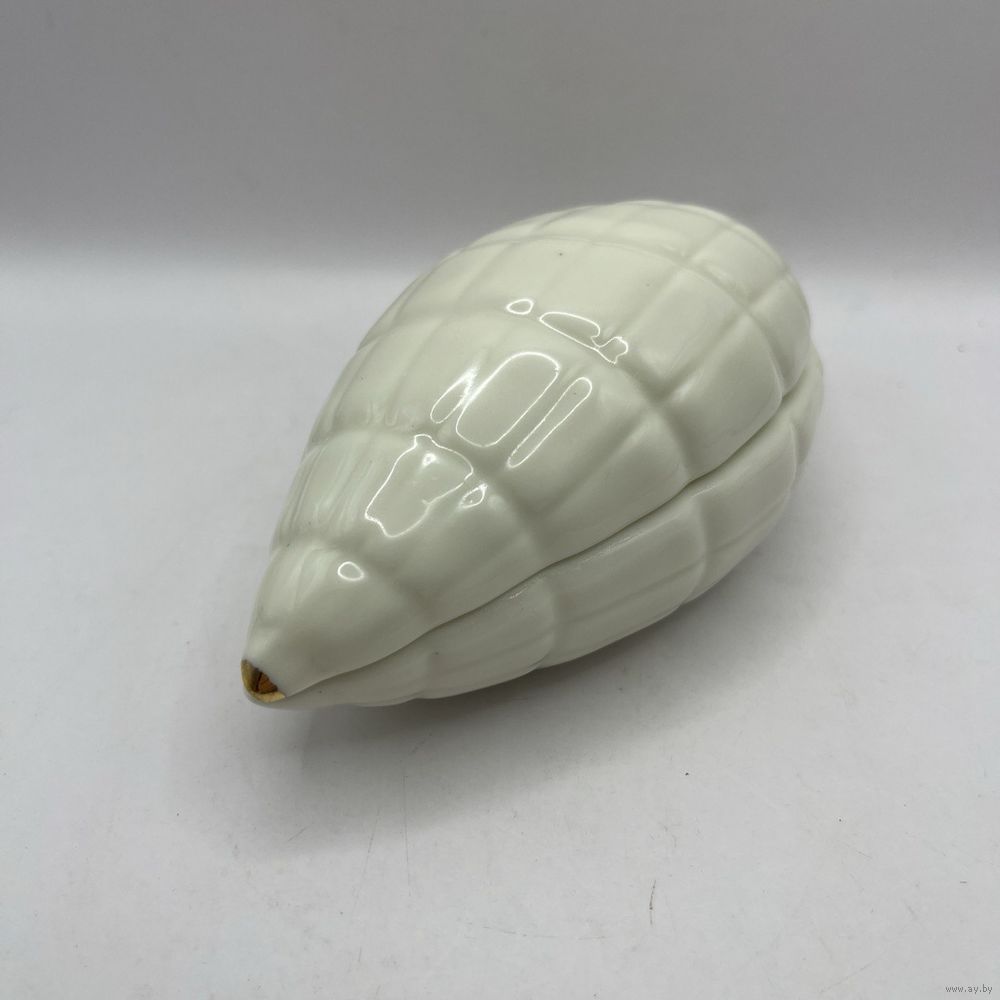 Винтажная шкатулка из глазурованного фарфора цвета айвори в форме ракушки. Ручная работа с декором золотом. Франция. 1950-е г.г. Размер 15 х 8 х 6,5 см. Глубина 3 см.