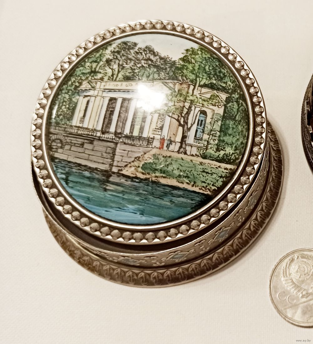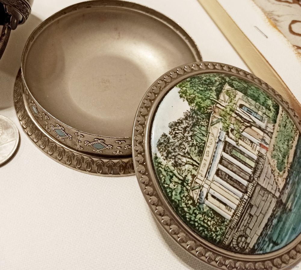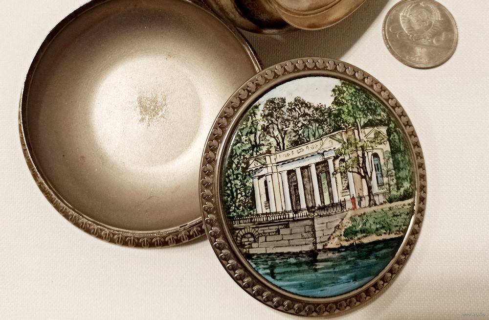 Шкатулка ( пудреница с зеркалом внутри ) для женских украшений. Состояние очень хорошее. Мельхиор, живописная горячая эмаль, бирюза. На внутренней сторон крышки зеркало. Хороший ностальгический подарок для женщины средних лет. Выпущена в 50-х годах прошлого века. При необходимости возможны дополнительные фотографии.