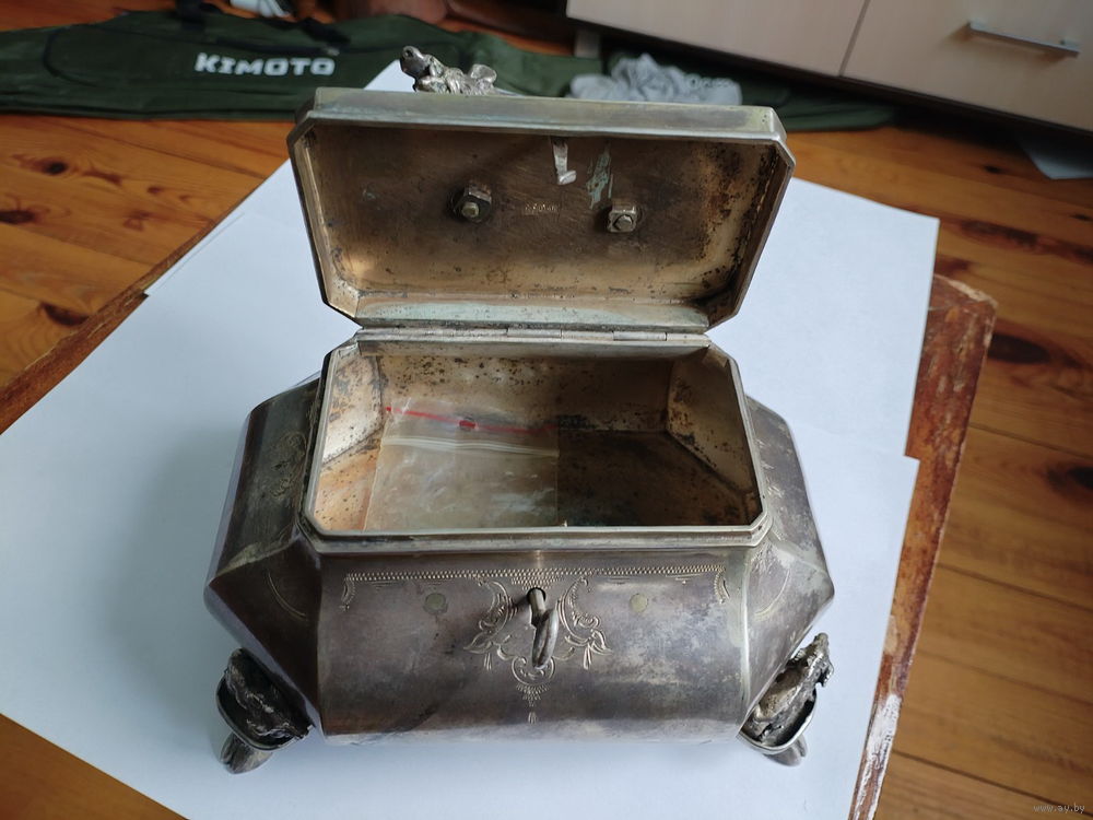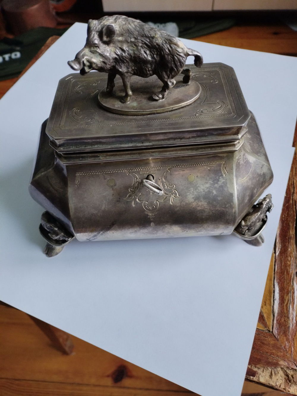 | год на клейме 1887, вес 730 грамм, длина 16 см, ширина 12 см, высота 14 см | |