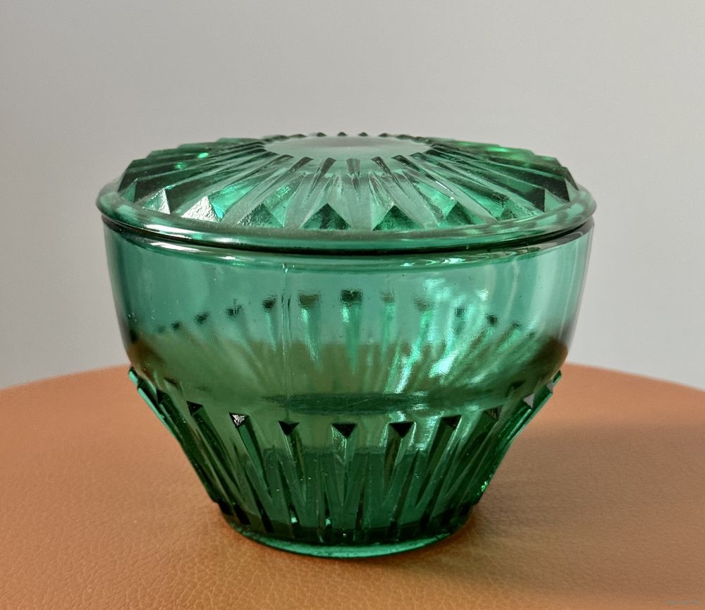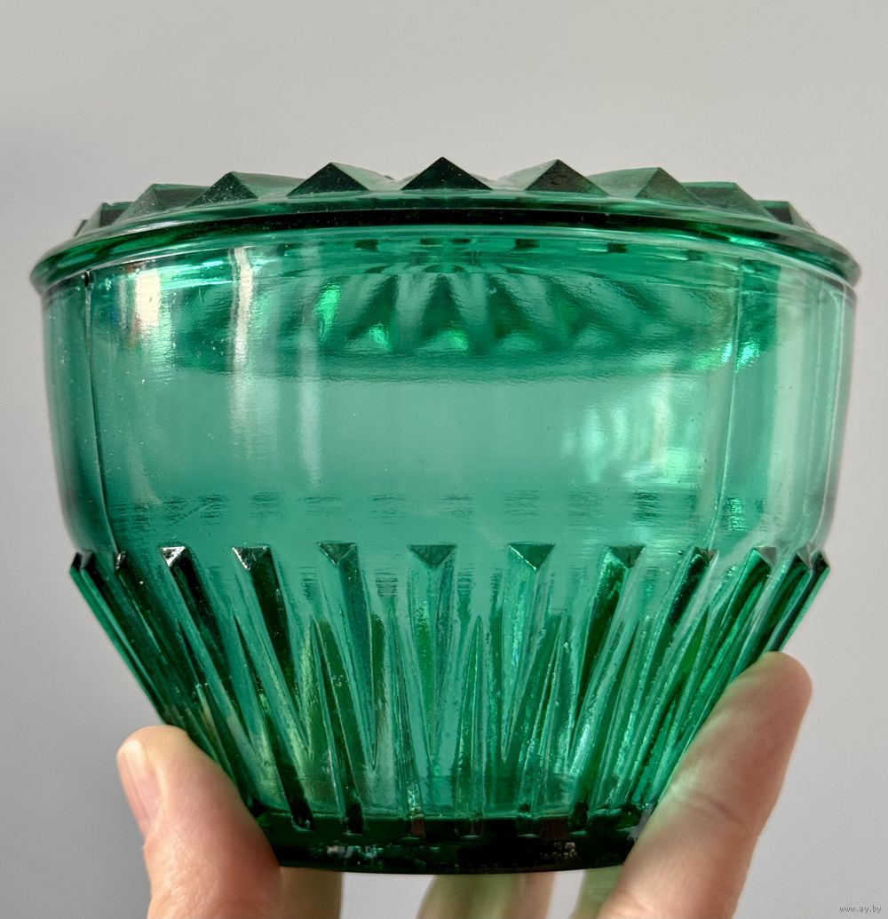 Винтажная шкатулка из прессованного стекла. Неман. Высота 8,5см., диаметр верхней части 11см. Состояние хорошее.