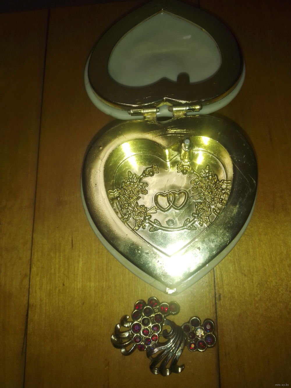 Шкатулка винтажная для бижутерии .С бижутерией.Брош.