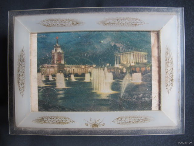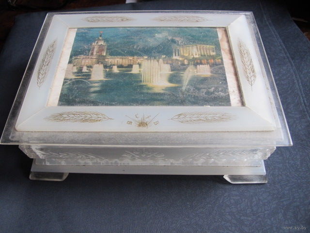 Шкатулка 'Всесоюзная сельскохозяйственная выставка' времен СССР (оргстекло, 18х12х4.5 см)