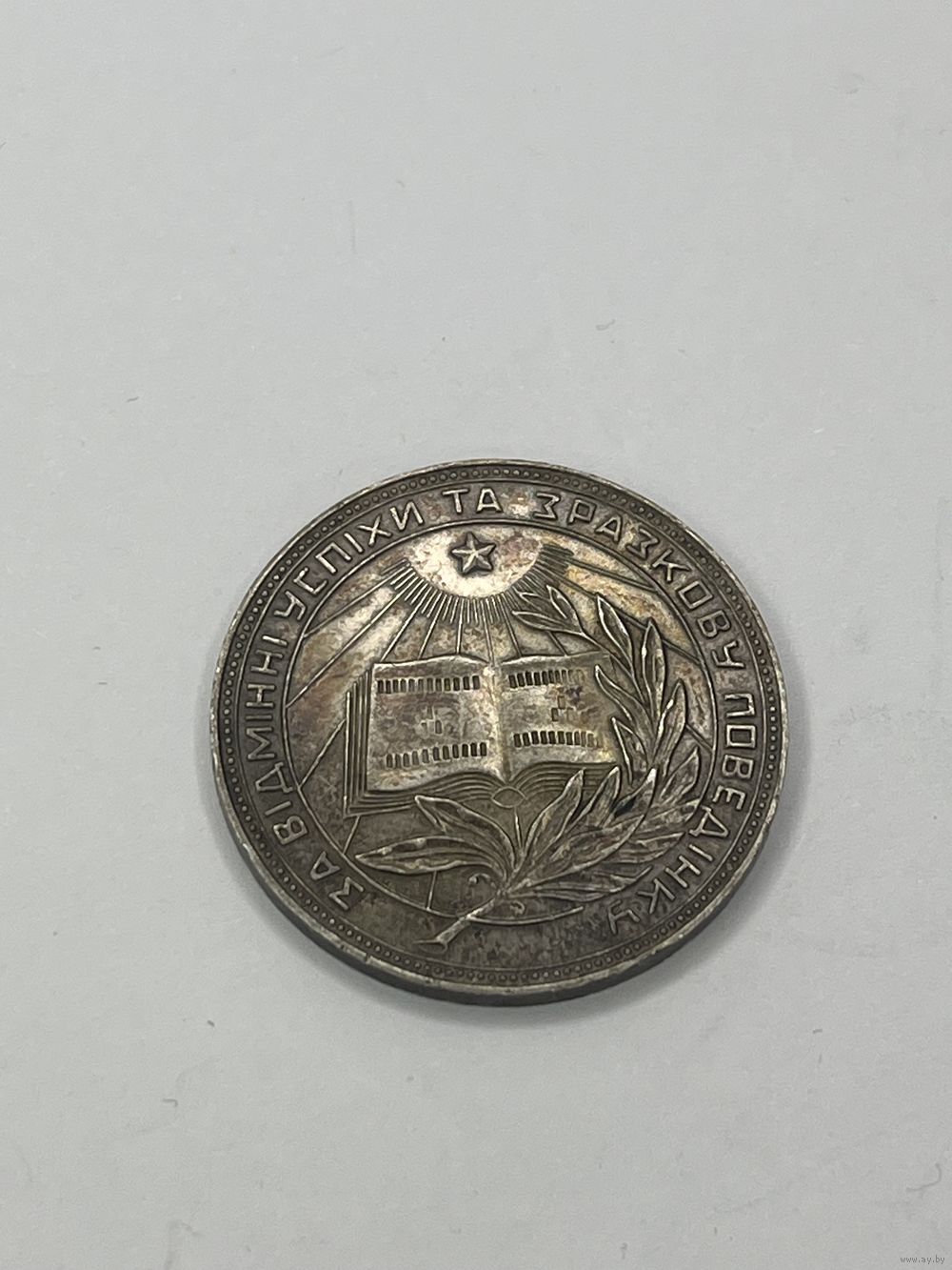 ШКОЛЬНАЯ МЕДАЛЬ СЕРЕБРЯНАЯ УССР СЕРЕБРО 32 мм. ШКОЛА СССР