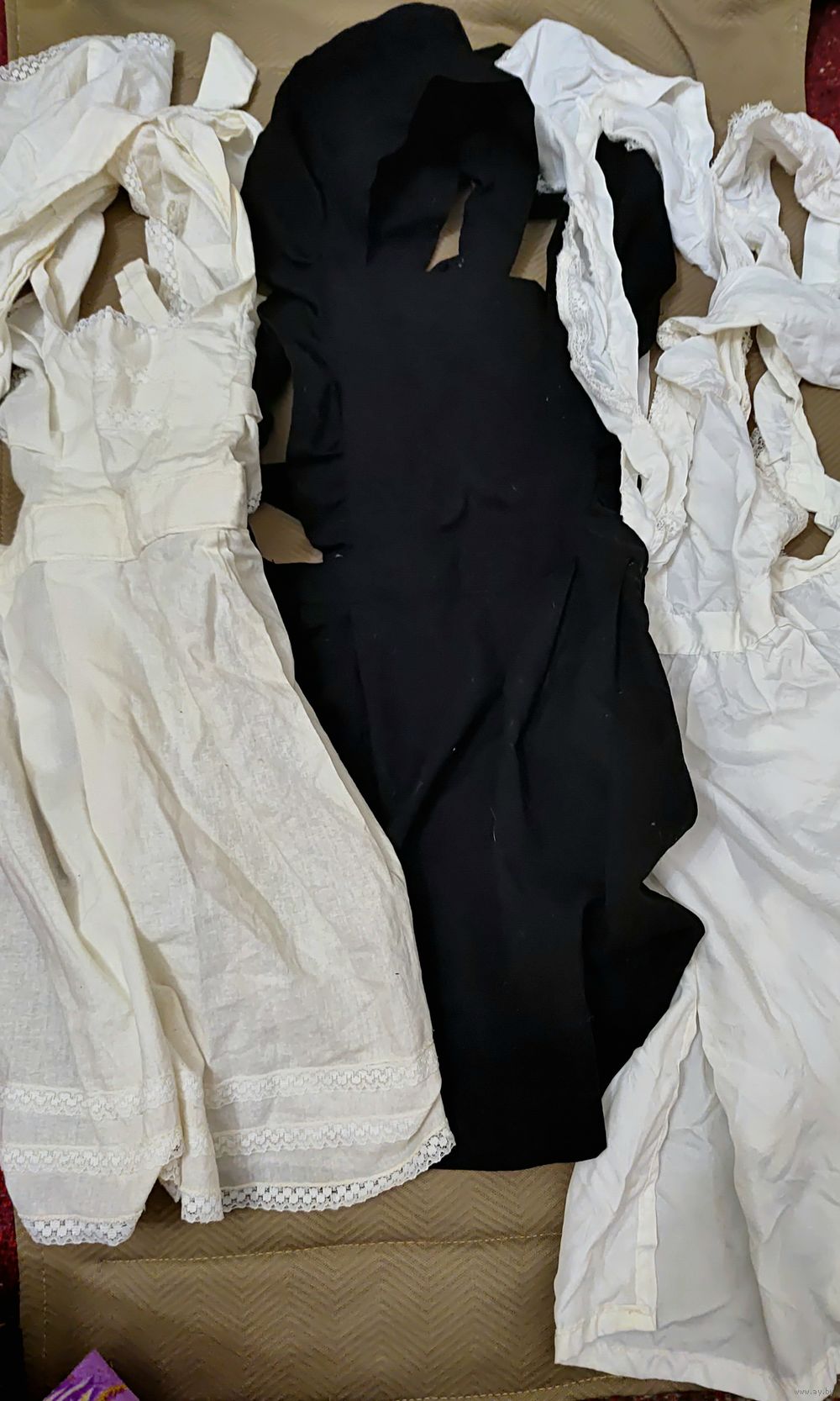 Школьные фартуки ХБ и искусственный шёлк 1970 годов. В шёлковом, микро дырочки. ХБ б/у Шёлковый новый