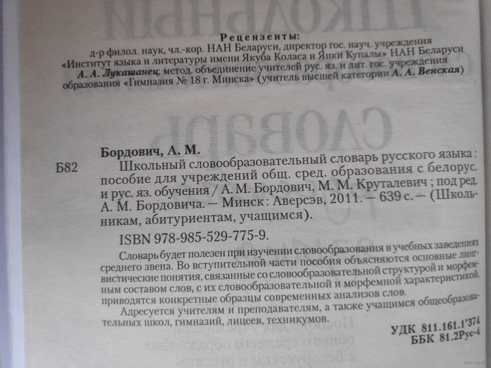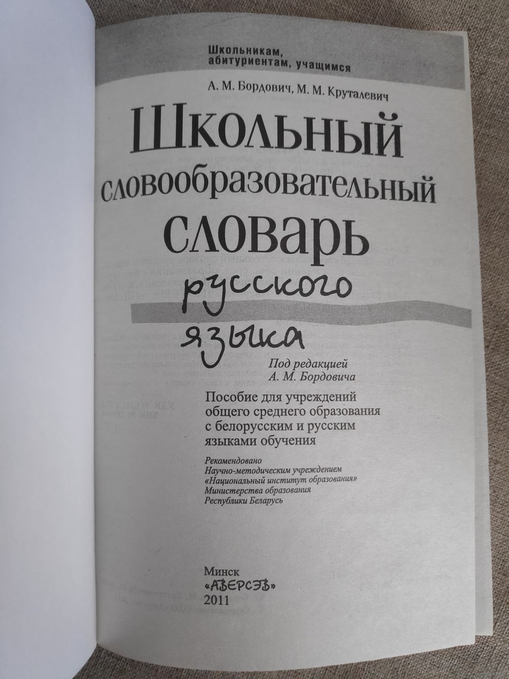 Школьный словообразовательный словарь русского языка. Пособие для учреждений общего среднего образования с белорусским и русским языками обучения.