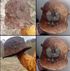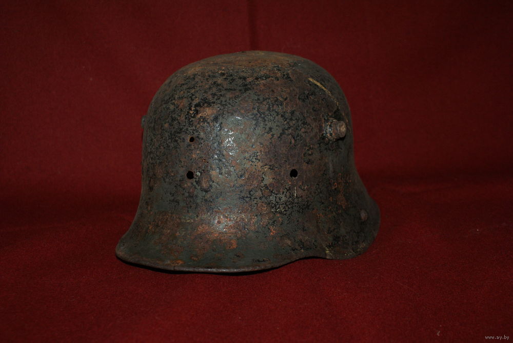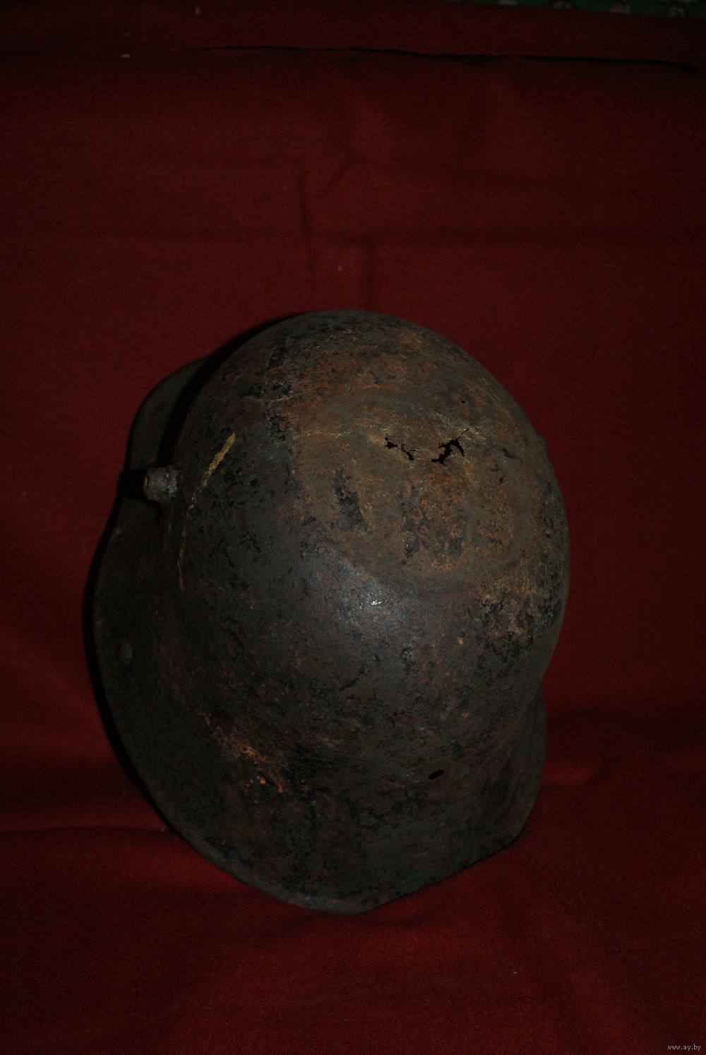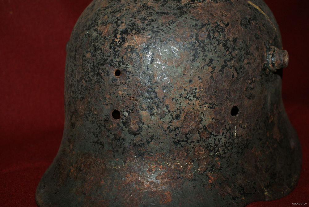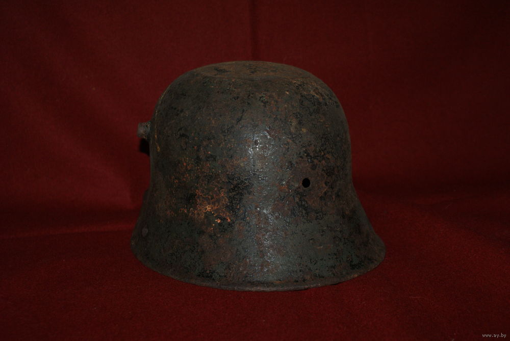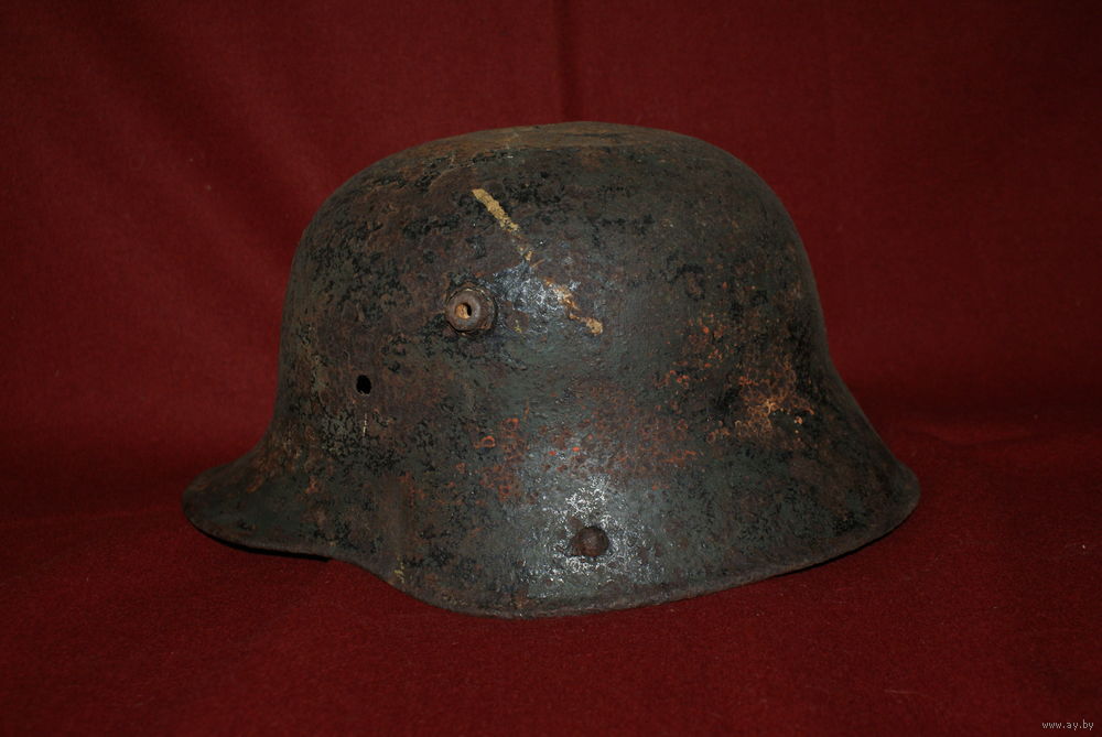Редкая антуражная вещь в коллекцию. Шлем в чёрном перекрасе, более 60% кайзеровской фельдграу. Мелкие дефекты на куполе, трещина сбоку подварена и зачищена.