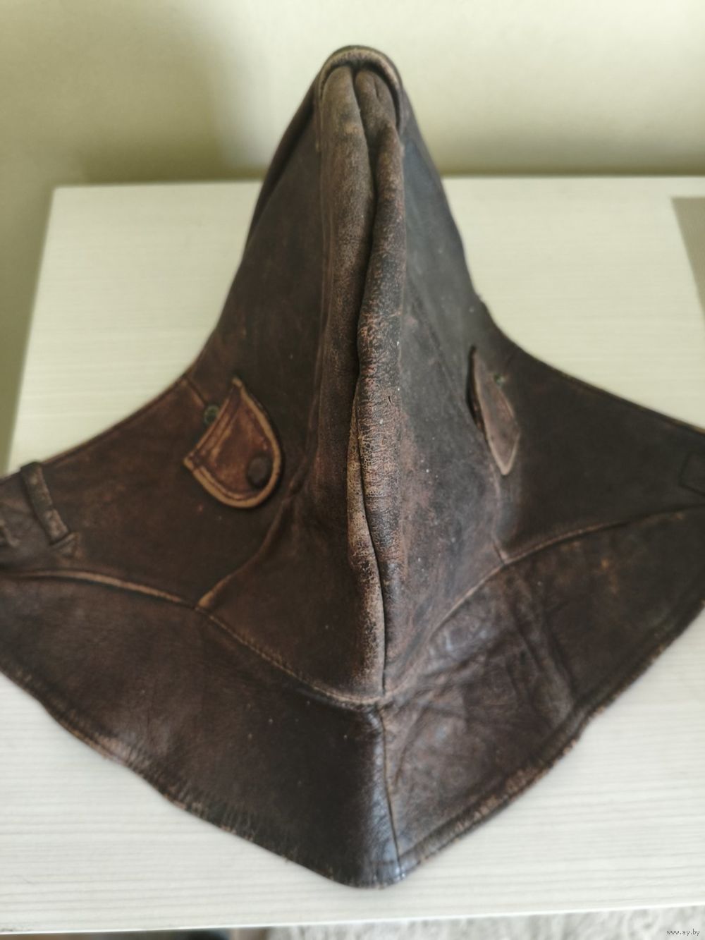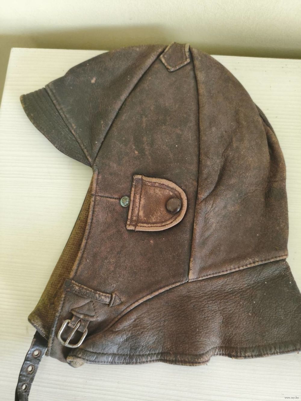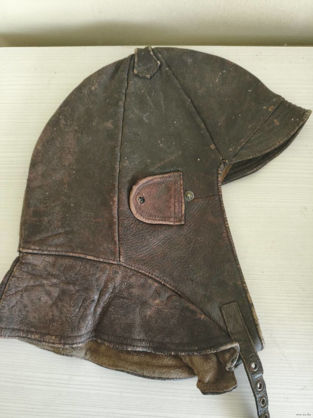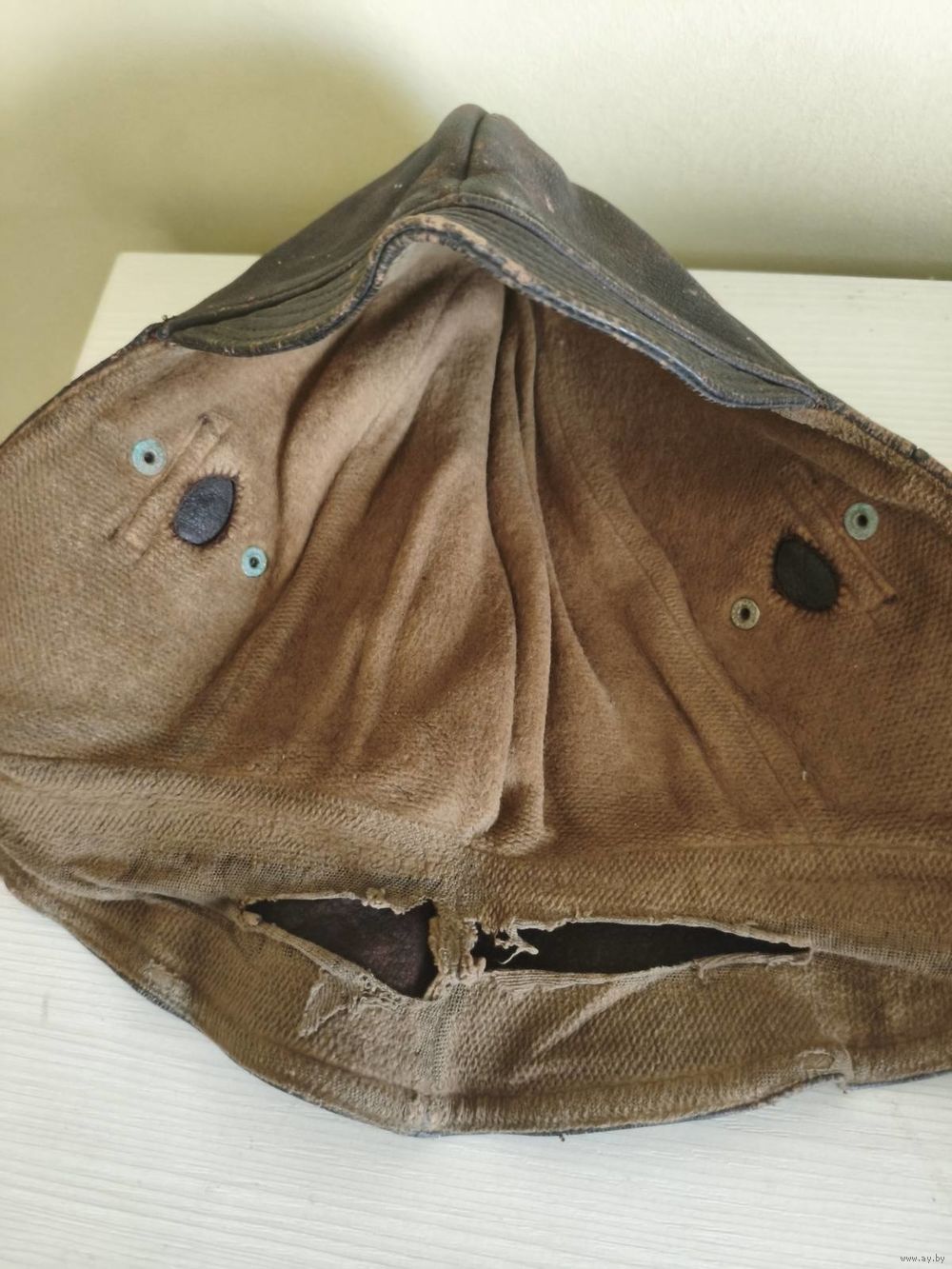 Шлем немецкого лётчика из натур. кожи на байке. Состояние.