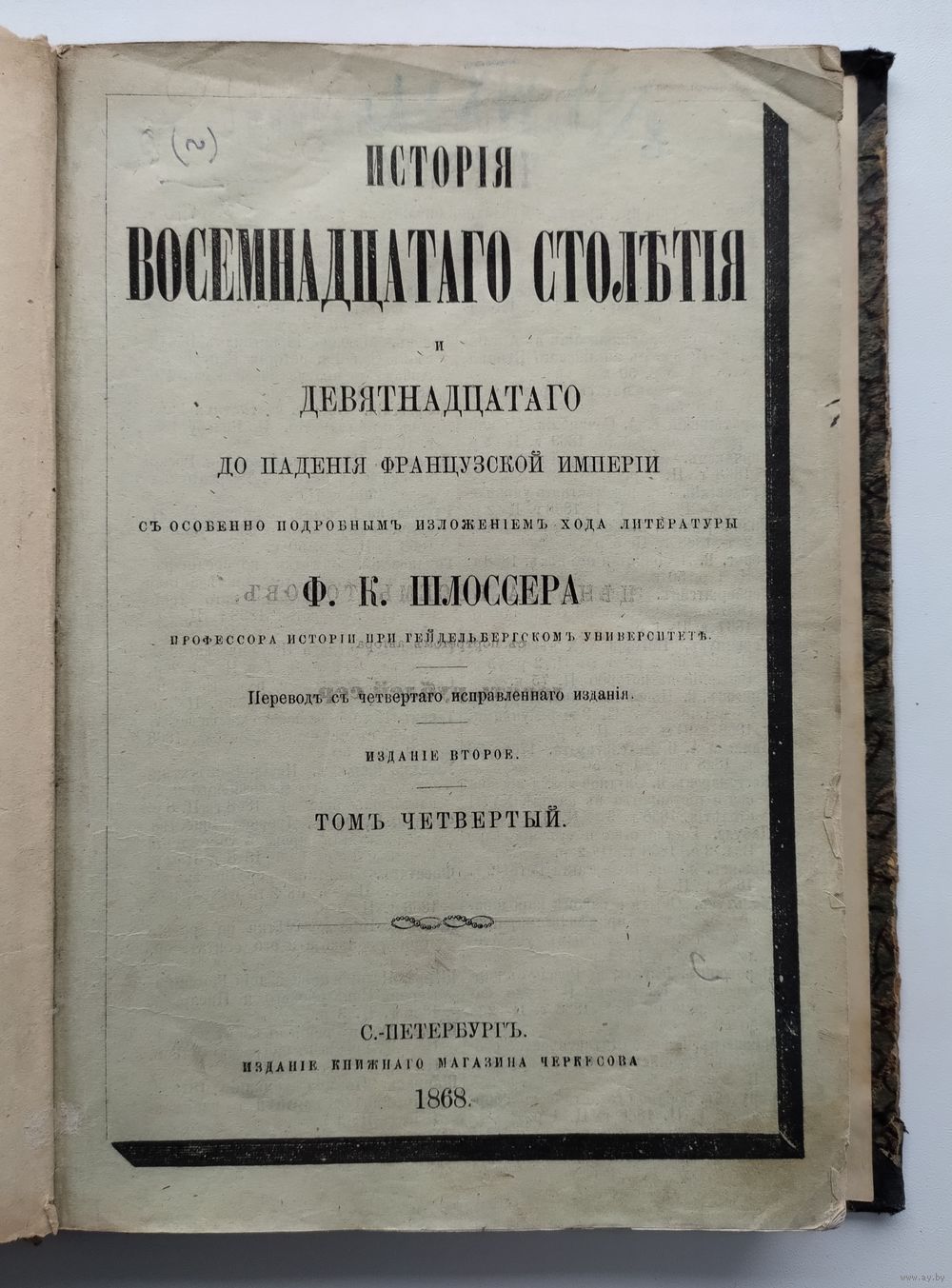Шлоссер Ф.К. История восемнадцатого столетия и девятнадцатого до падения Французской империи в 8-ми томах. Том 4. Издание второе. СПб.: Издание Книжного магазина Черкесова, 1868г., 424 с.