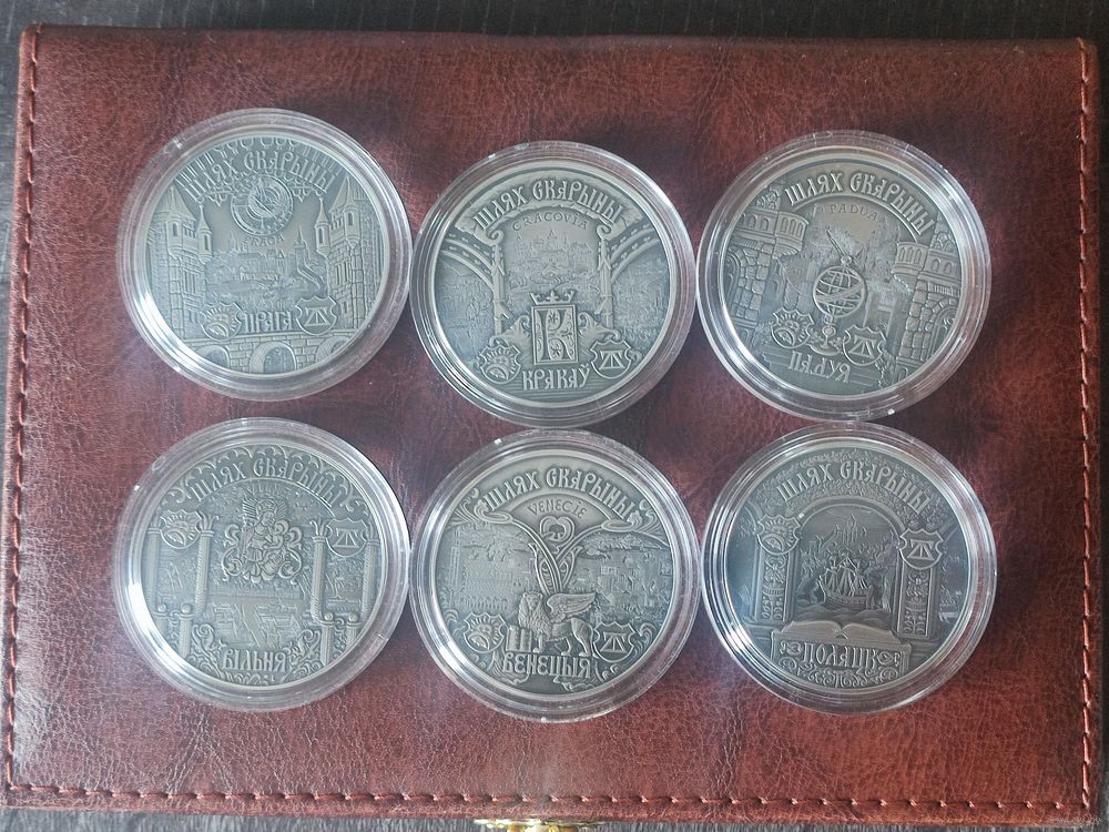 В комплекте монеты в капсулах, сертификаты, футляр на 6 монет.