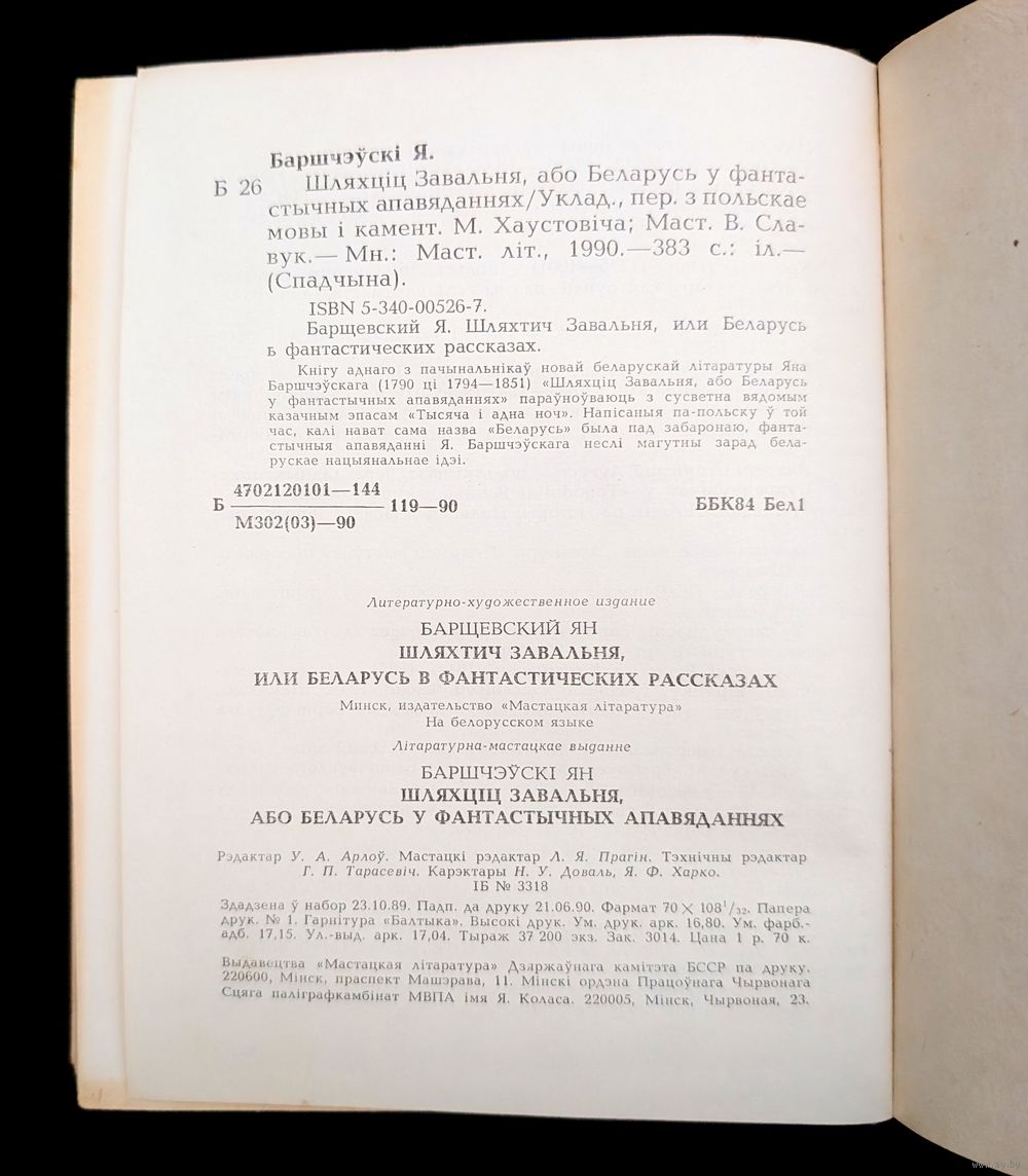 Кнігу аднаго з пачынальнікаў новая беларуская літаратуры Яна Баршчэўскага "Шляхціц Завальня, або Беларусь у фантастычных апавяданнях" параўноўваюць з сусветна вядомым казачным эпасам "Тысяча і адна ноч". Напісаныя па-польску ў той час, калі нават сама назва "Беларусь" была пад забаронай, фантастычныя апавяданні Я. Баршчэўскага неслі магутны зарад беларускае нацыянальнае ідэі.
