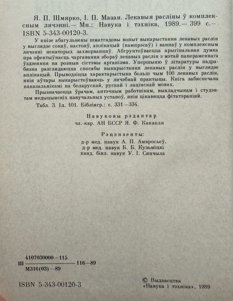 Шмярко Лекавыя расліны у комплексным лячэнні раслiны лячэннi