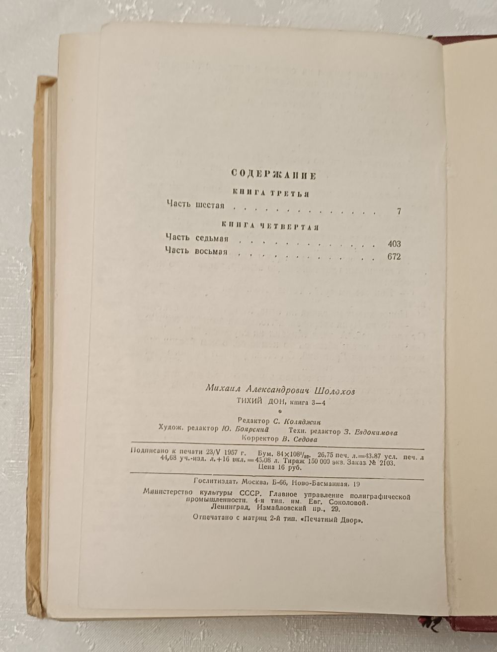 Шолохов Михаил Александрович. Тихий Дон (комплект из 2 книг). Государственное издательство художественной литературы, Москва, 1957, стр. 764 + 856, твердый переплет.