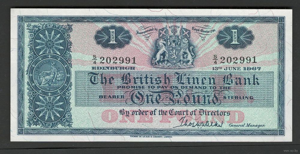 Шотландия 1 фунт 1967 года. British Linen Bank. Тип P-168. Состояние UNC