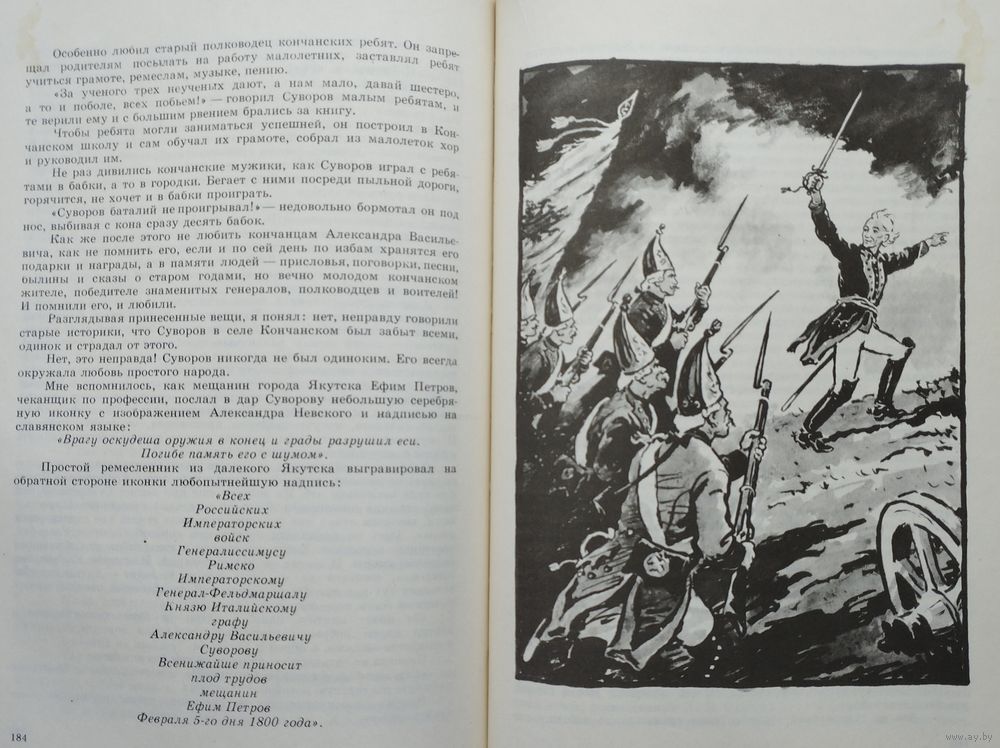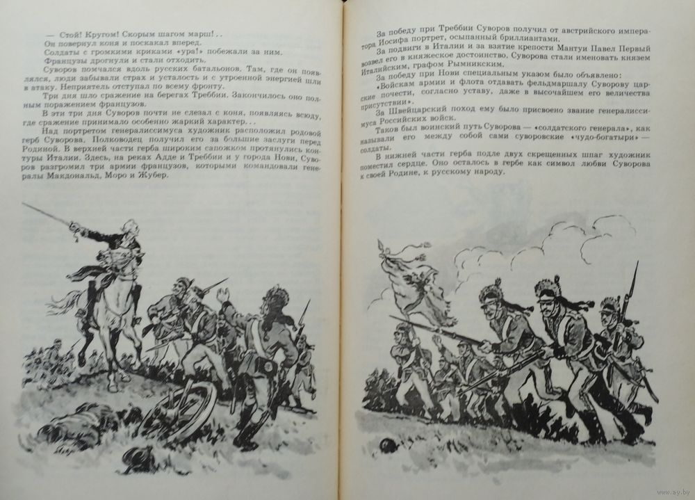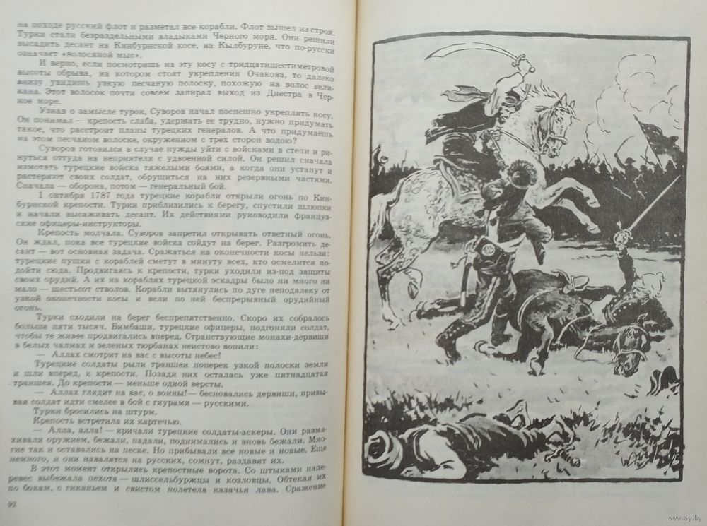 Большой энциклопедический формат. 258 стр. Полководец Суворов — это не просто далекое прошлое нашего народа, но героическое прошлое. Во всех своих деяниях Суворов немыслим без народа, без своих чудо-богатырей, без тысяч русских, украинцев, белорусов, молдаван, грузин, башкир, калмыков, сербов, хорватов. Это они — солдаты русской армии — вместе со своим полководцем вписали в книгу истории нашей Родины не одну золотую страницу. В основу книги положены занимательные истории о труде музейных работников и поисках реликвий воинской славы. Рассказы о том, как отыскали бесследно пропавшую в 1917 году боевую шпагу Суворова, как нашли шкатулку с наградой молодого воина за подвиг при штурме Измаила, как комсомольцы этого города в наши уже дни отыскали морские осадные орудия петровских времен. Штамп личной библиотеки.