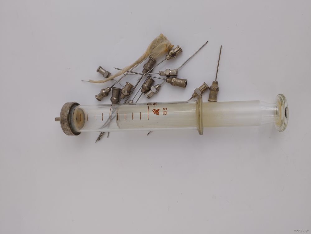 шприц многоразового применения, стекло. Иголки не входят в комплект к лоту (образец).