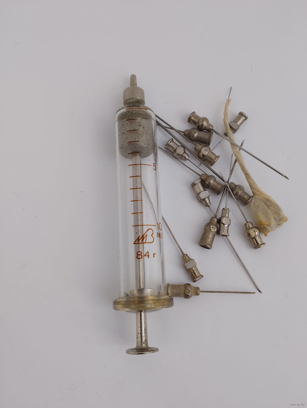 шприц многоразового применения, стекло. Иголки не входят в комплект к лоту (образец). |