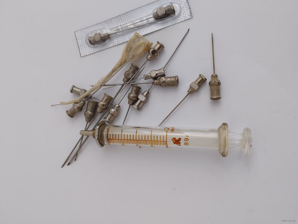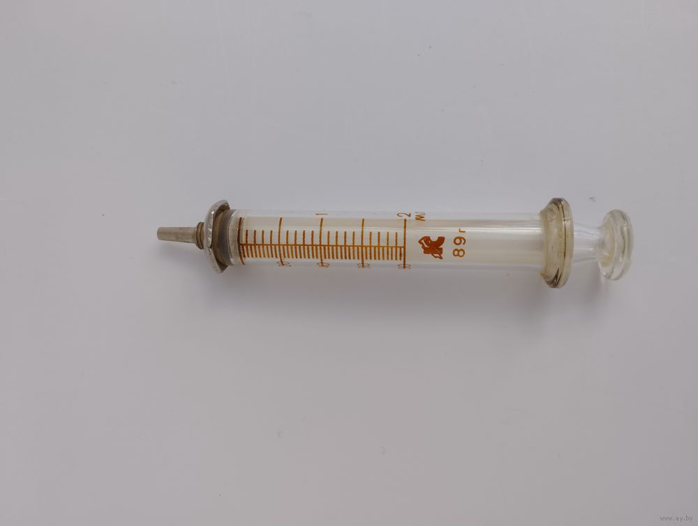 шприц многоразового применения, стекло. Иголки не входят в комплект к лоту (образец). |