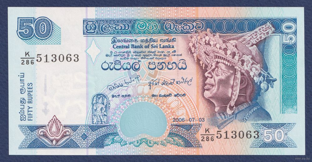 Шри-Ланка, 50 рупий 2006 г., P-110f (K, танцор, ступа Абхаягири, храм Анурадхапура), UNC