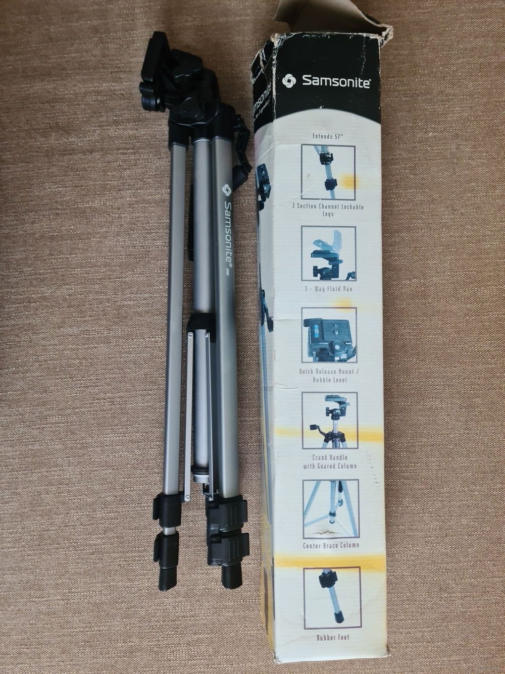 Легкий алюминиевый складной штатив Samsonite для камеры с панорамной головкой.