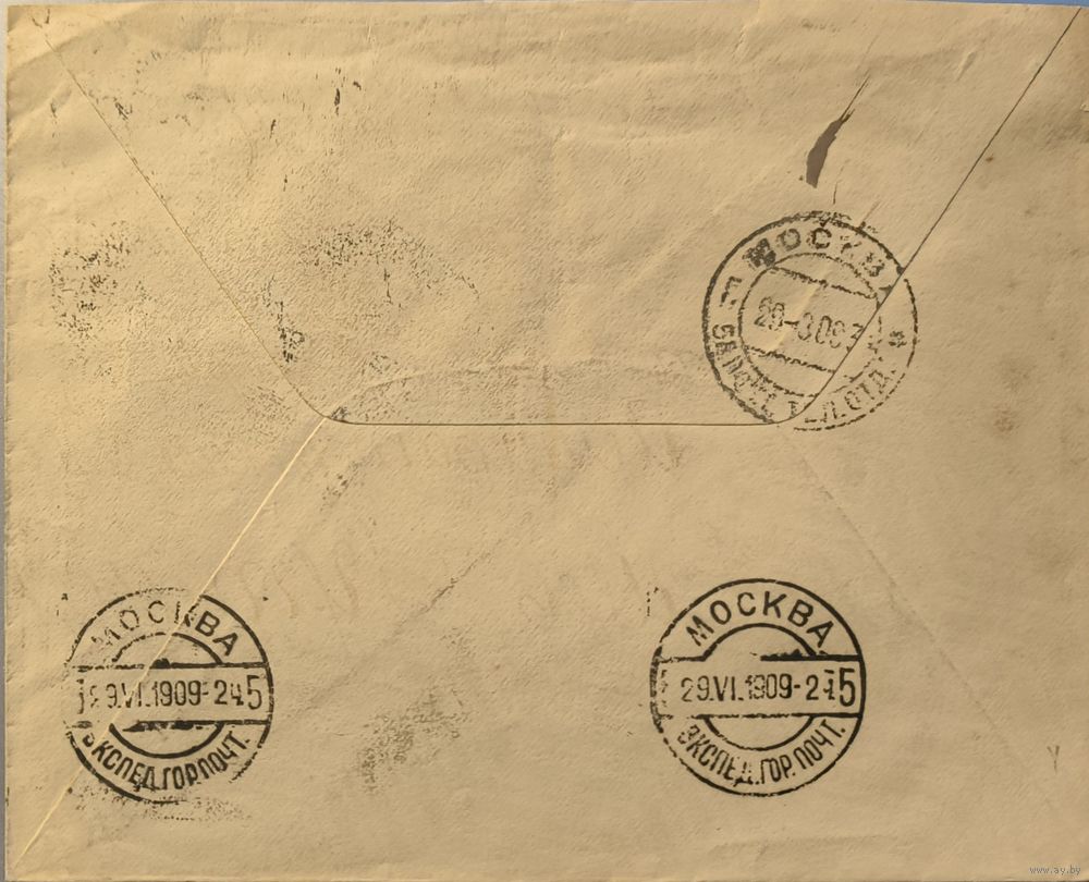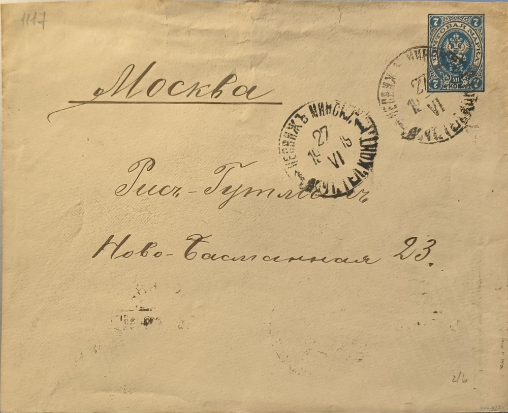 Штемпельный конверт Российской Империи. 7 коп (Илюшин № 44а). Третий выпуск(1907г). Отправлено из г. Несвиж (Минской губ) (27.06.1919г) в г. Москва.