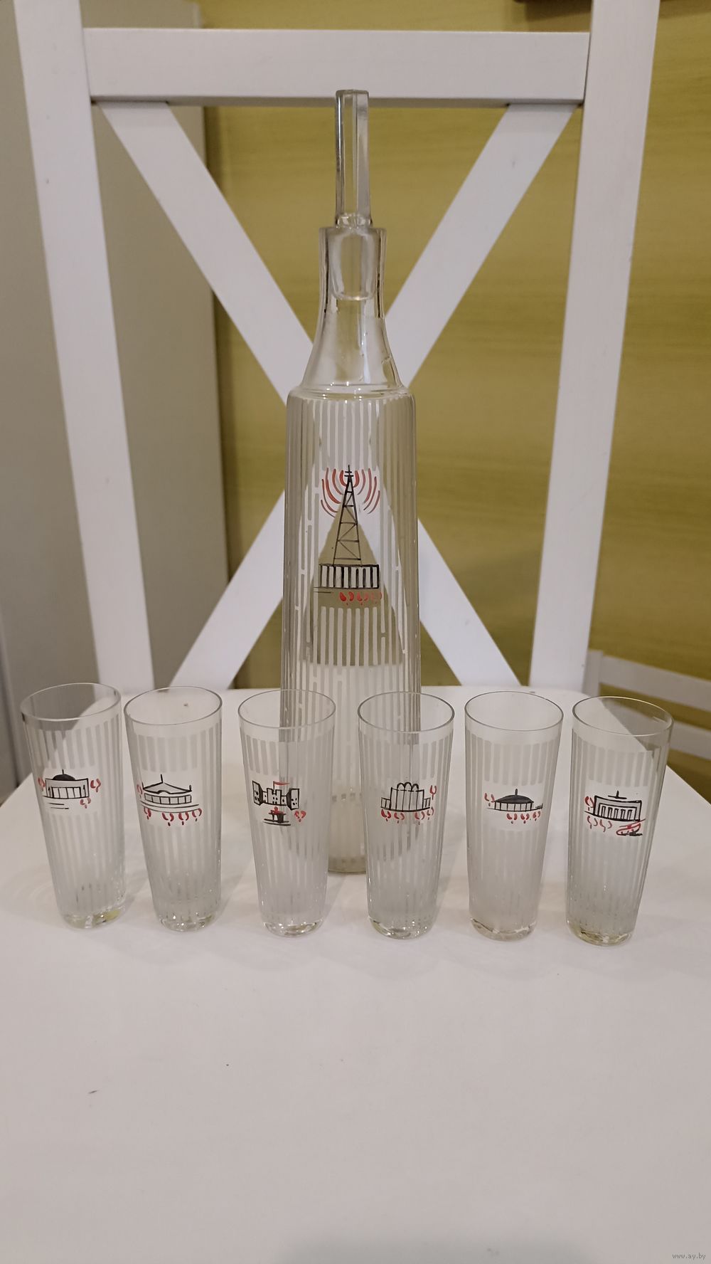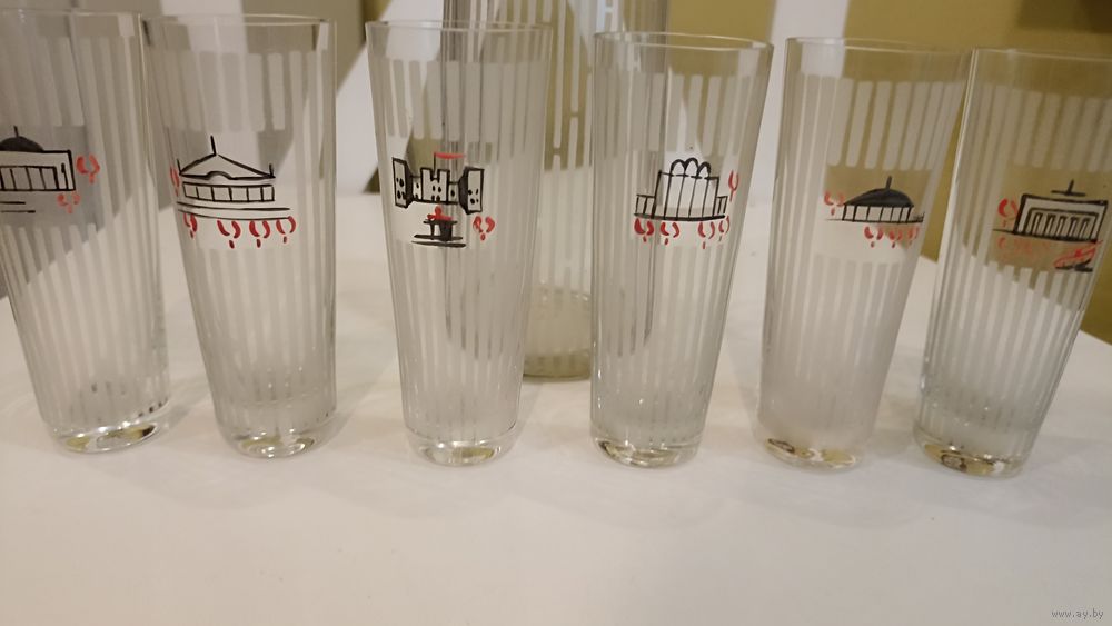Ручная роспись, травление, гранение. Предметы в безупречном состоянии, без мельчайших дефектов. Из за тонкого стекла крайне редко сохраняются в таком состоянии и такой комплектности. Минимальная цена установлена значительно ниже оценочной цены в каталоге