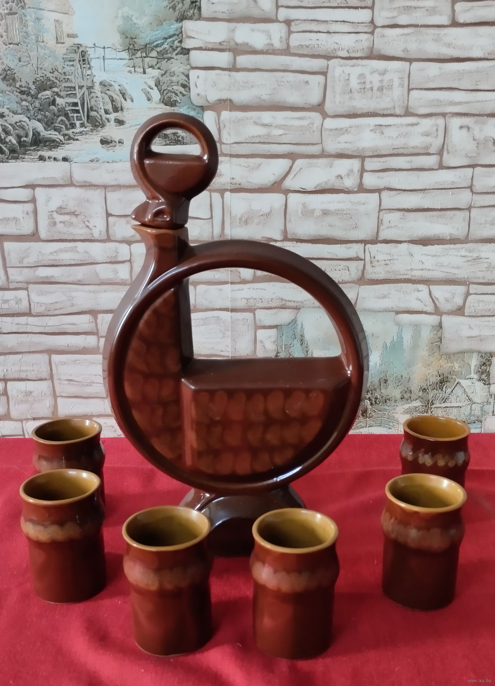 Штоф необычной формы с рюмками. Винтаж.