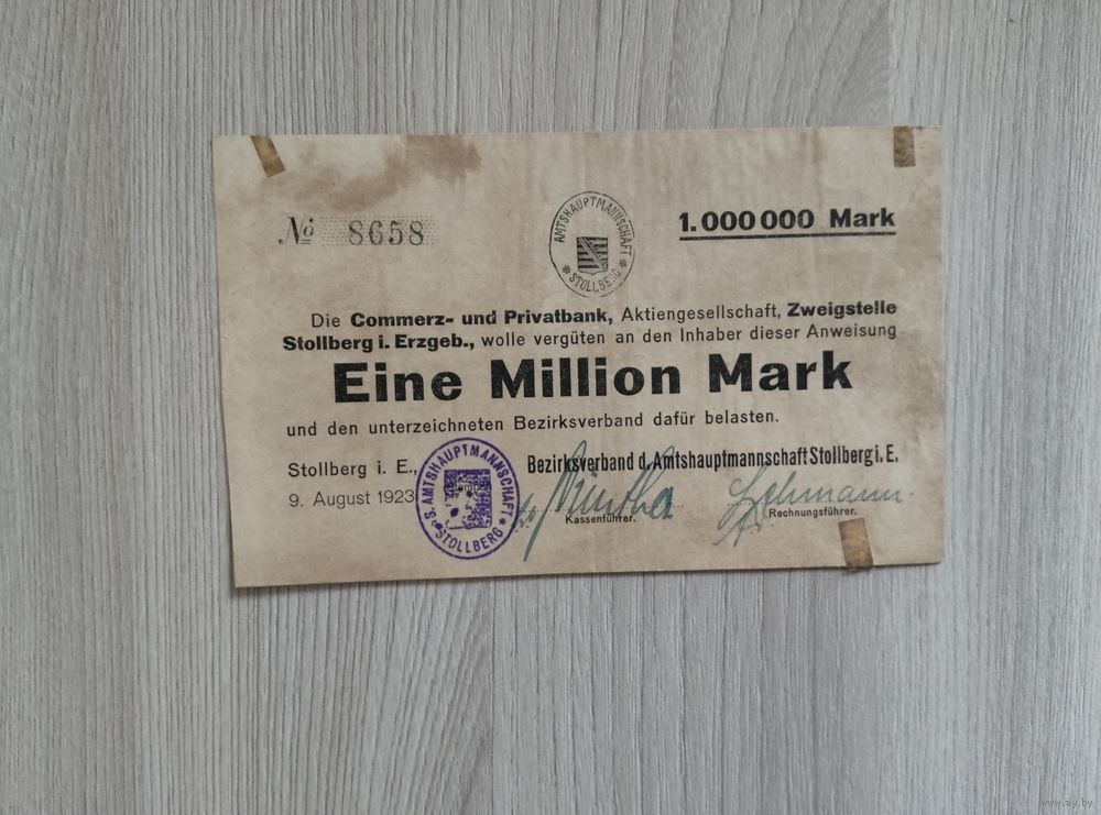 Штольберг частный коммерческий банк 1000000 марок 1923год.