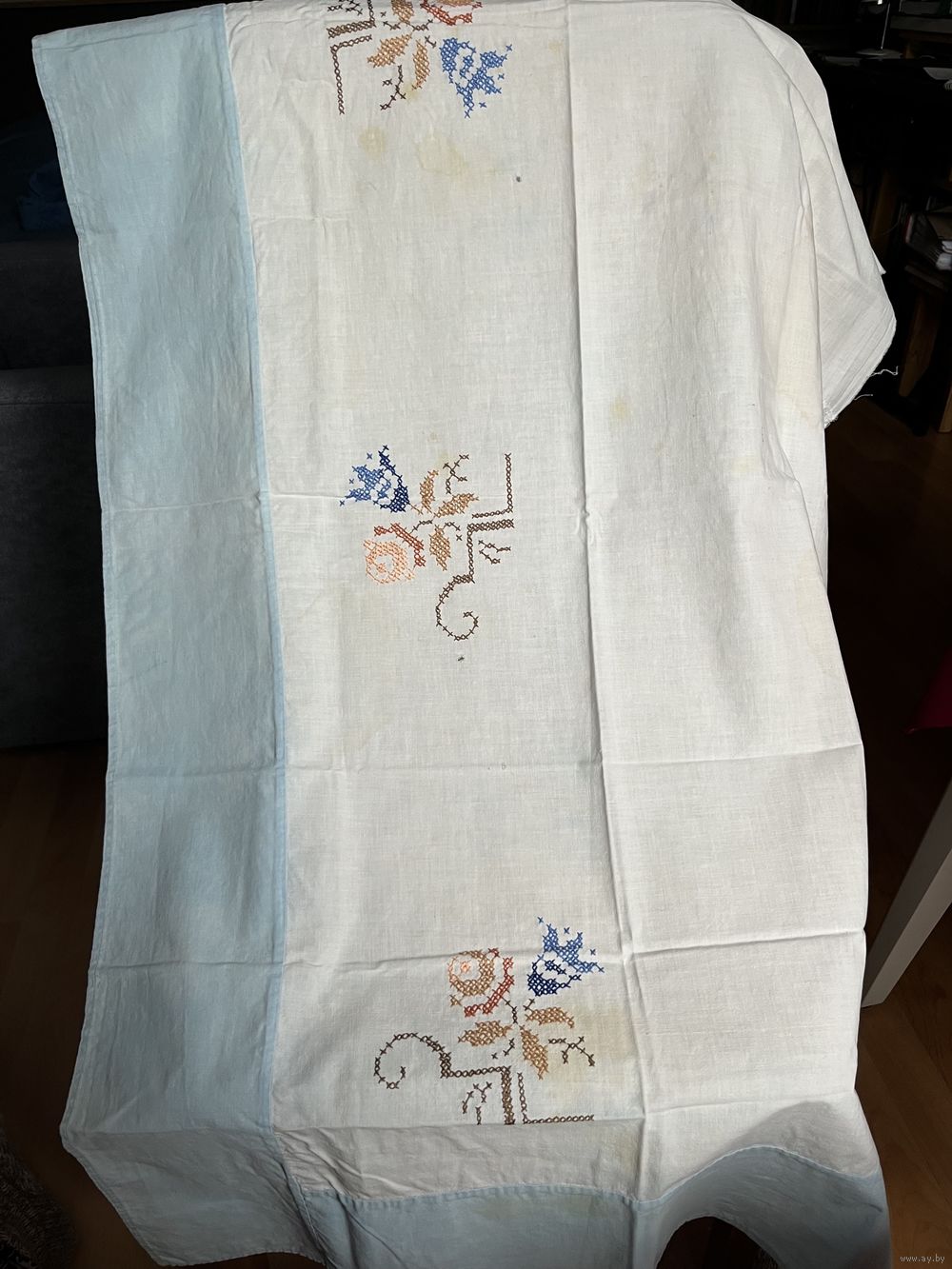 Шторка с вышивкой, х/б