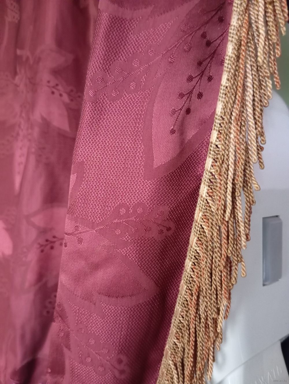 Ткань для штор шёлк , бахрома , две полоски-подвязки шёлк , Германия , лежали с 1950-ых в шкафу , пошиты в этом году . Всё Белпочтой или самовывоз