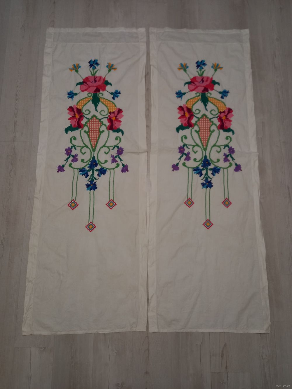 Состояние хорошее элемент белорусского национального интерьера изготовлена в ручную, вышитая крестиком, середина 20го века, размер одной шторины 60×173см, смотрите все мои лоты