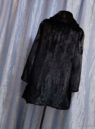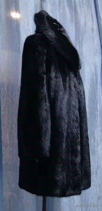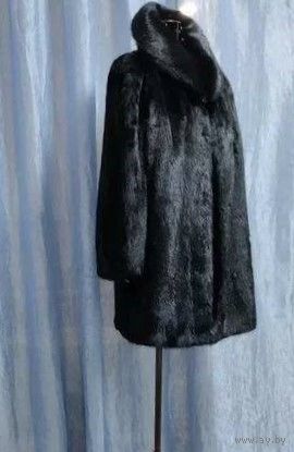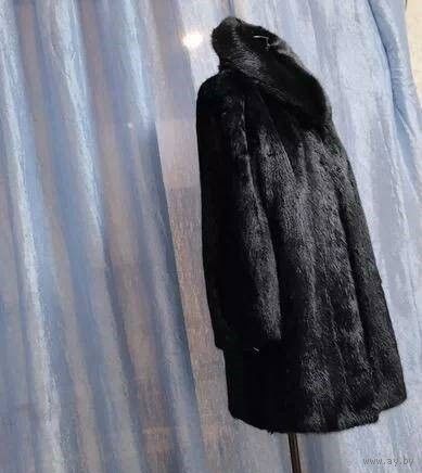 Размер 48 (L). Длина изделия — 80 см, длина рукава — 7/8(58 см). ОГ - 110 см. ОБ - 114 см. Модель прямая. Натуральный коротко-ворсный мех норки упругий, с глянцевым здоровым блеском. Шкуры цельные с отличной пластикой. Классический воротник "полушаль". Изделие отшито в Европе. Отличное качество и состояние. Есть карманы, кулисы в рукавах и в подоле.