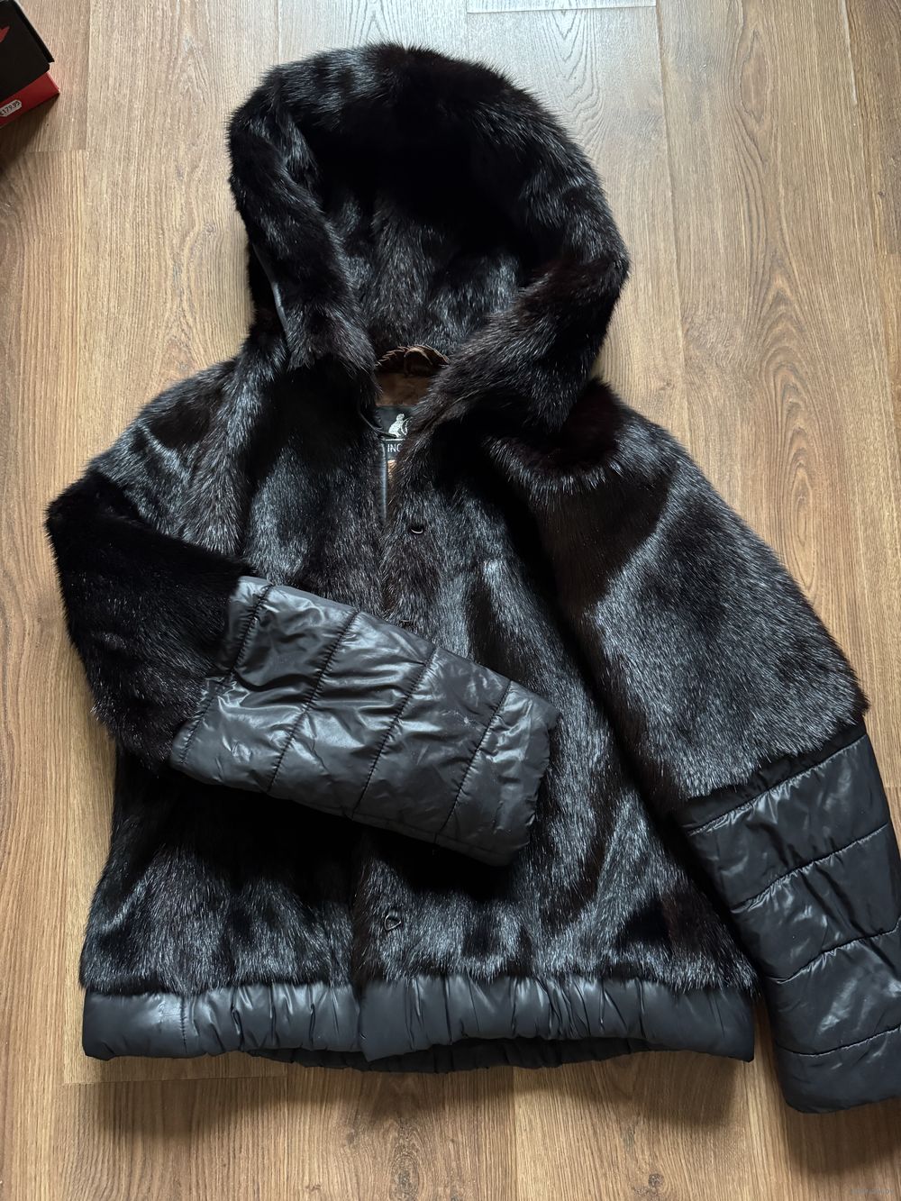 Шуба-куртка из красивого и качественного меха норки. Интересный актуальный фасон, очень удобная для автоледи. Состояние без нюансов, все застежки крепко прошиты, мех без изъянов. Полуобхват груди 58 см (+-1), длина по спине 90 см